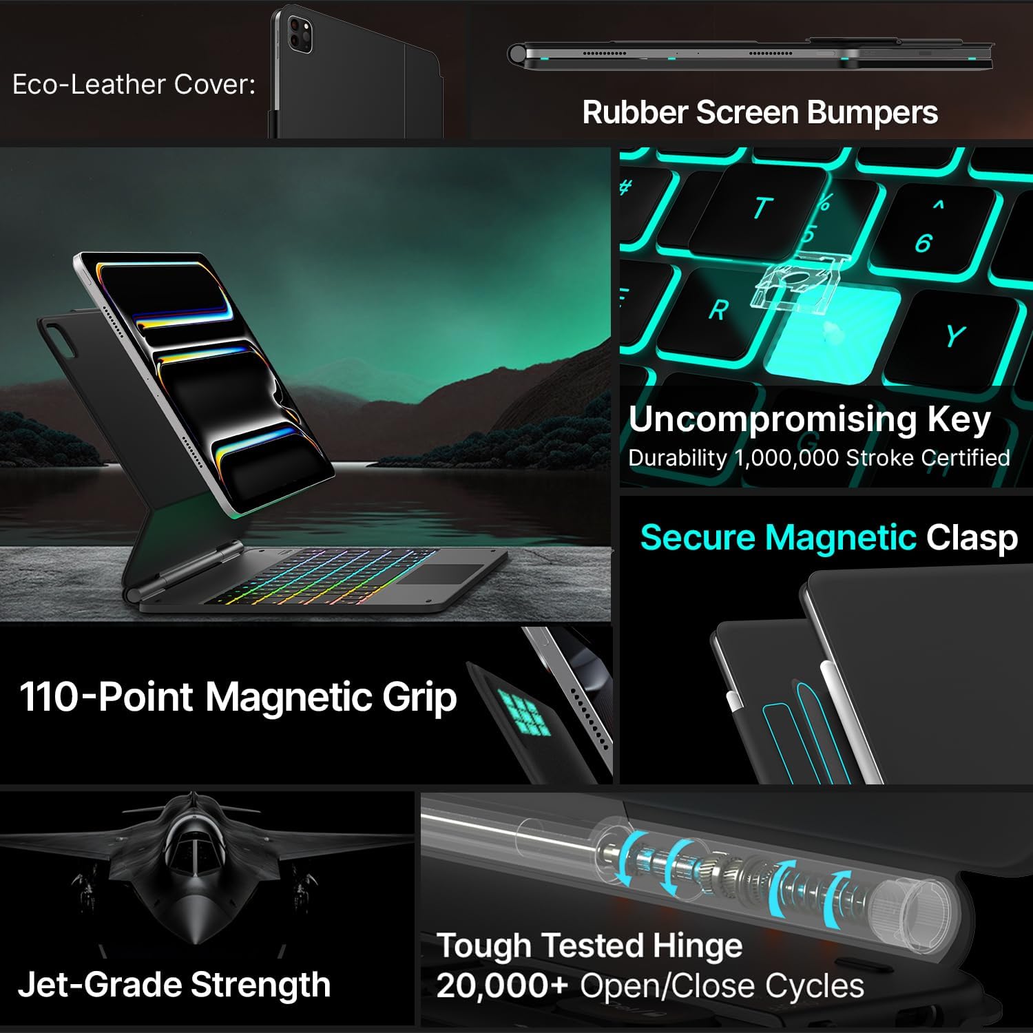 typecase Keyboard Case for iPad Pro 13-inch (M4) 2024,Magic Keyboard with 11 Colors Backlight for iPad Pro 13,Keyboard Case with Pencil Holder,Multi-Touch Trackpad,Easy-Set Magnetic Stand,Carbon Fiber