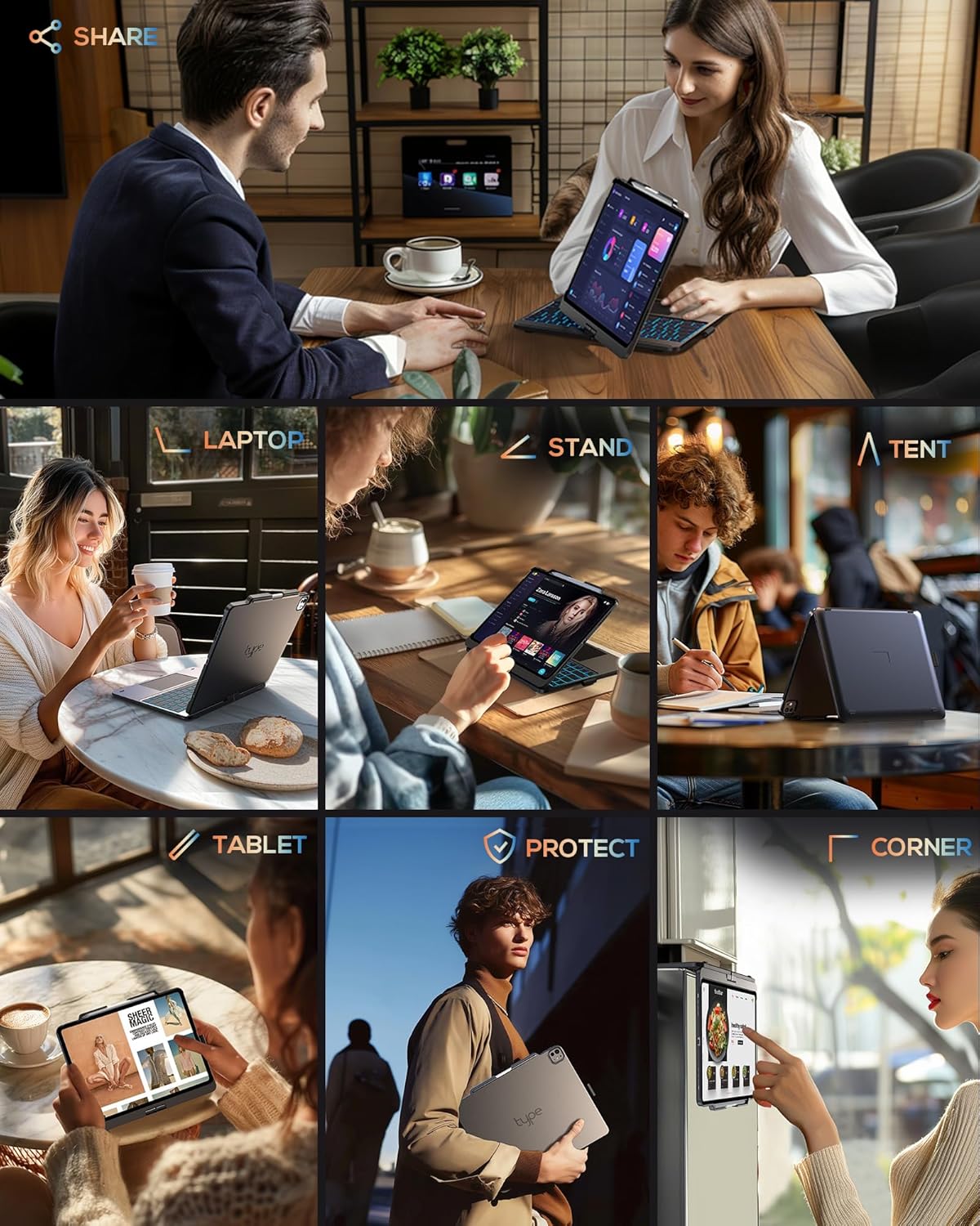- Usage Modes: 360° hinge on this iPad Pro 13 inch keyboard offers 7 different usage modes for writing, drawing, watching videos, or browsing; Ideal for classrooms, critical tasks, or creative activities. Please note that the stable angle of the keyboard case is within 135°.