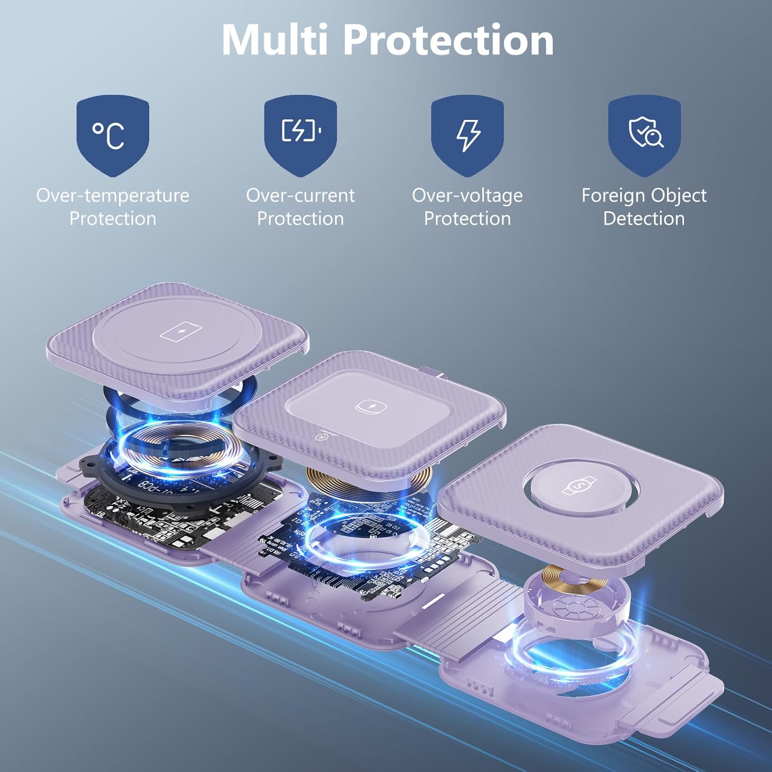 - ăFocus on Safe ChargingăThe upgraded certified wireless charger pays more attention to safe charging, Equip with integrated smart chips and offers multi-protection like over-voltage protection, short-circuit prevention, over-current protection, and more, and brings you a fast and stable wireless charging experience, keeping your devices in good condition.