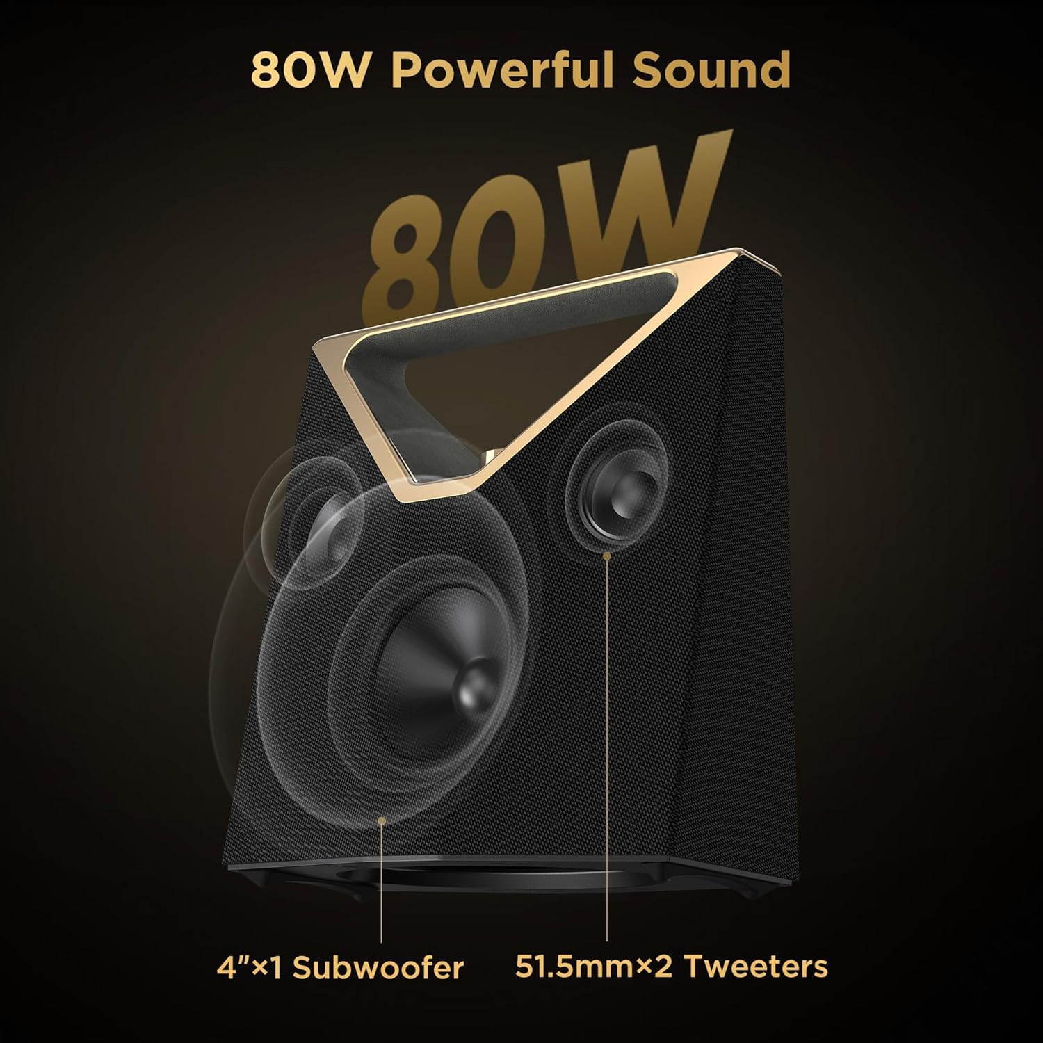 - 【EXTREME PORTABLE SOUND POWERED 80W 】BUGANi's innovative Bluetooth speaker boasts a rear design with a super-sized passive bass radiator, emitting intense audio waves for unparalleled audio performance. Equipped with 2*4” subwoofers, paired with 2*51.5mm tweeters, and enhanced by advanced DSP technology, it delivers ground-shaking bass clarity in every setting. Perfect for elevating your music experience, indoors or out.