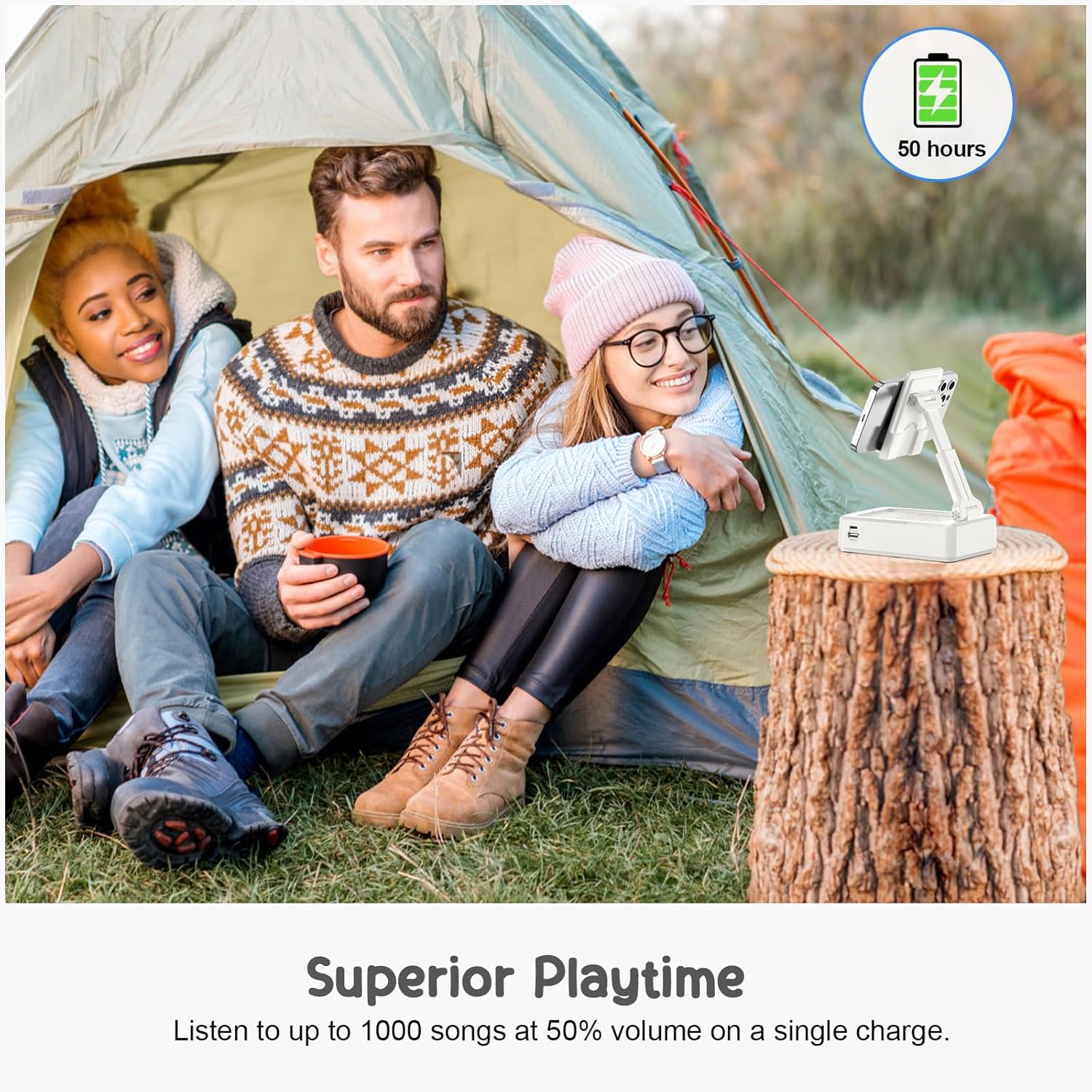TechGlow Foldable Cellphone Stand with Bluetooth Speaker and Power Bank Birthday Gifts for Men Women Mother Father Brother Sister Teens Cool Tech Gadgets-White