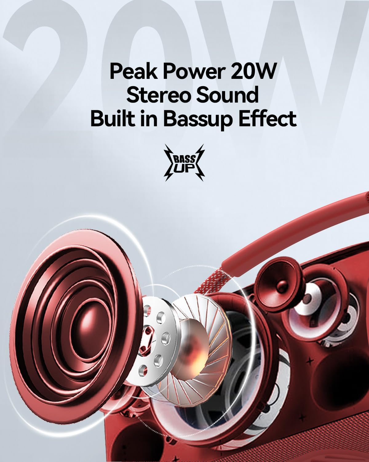 Portable Bluetooth Speaker with Light, Loud Sound and Deep Bass, IPX6 Waterproof, Up to 18H Playtime, TWS Pairing, Support Bluetooth/AUX/USB/TF Card for Home, Party, Outdoor and Travel (Red)
