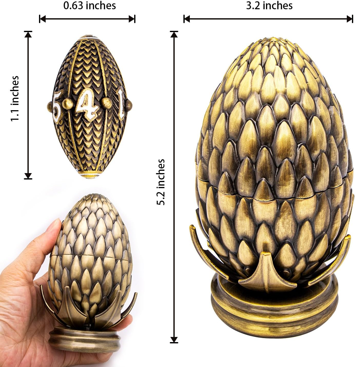 ARUOHHA DND Metal Dice Bronze Dragon Egg Dice with Rotating Dragon Egg Shell, Role Playing Game RPG Polyhedral D and D Dice Set D20 D12 D10 D8 D6 D4