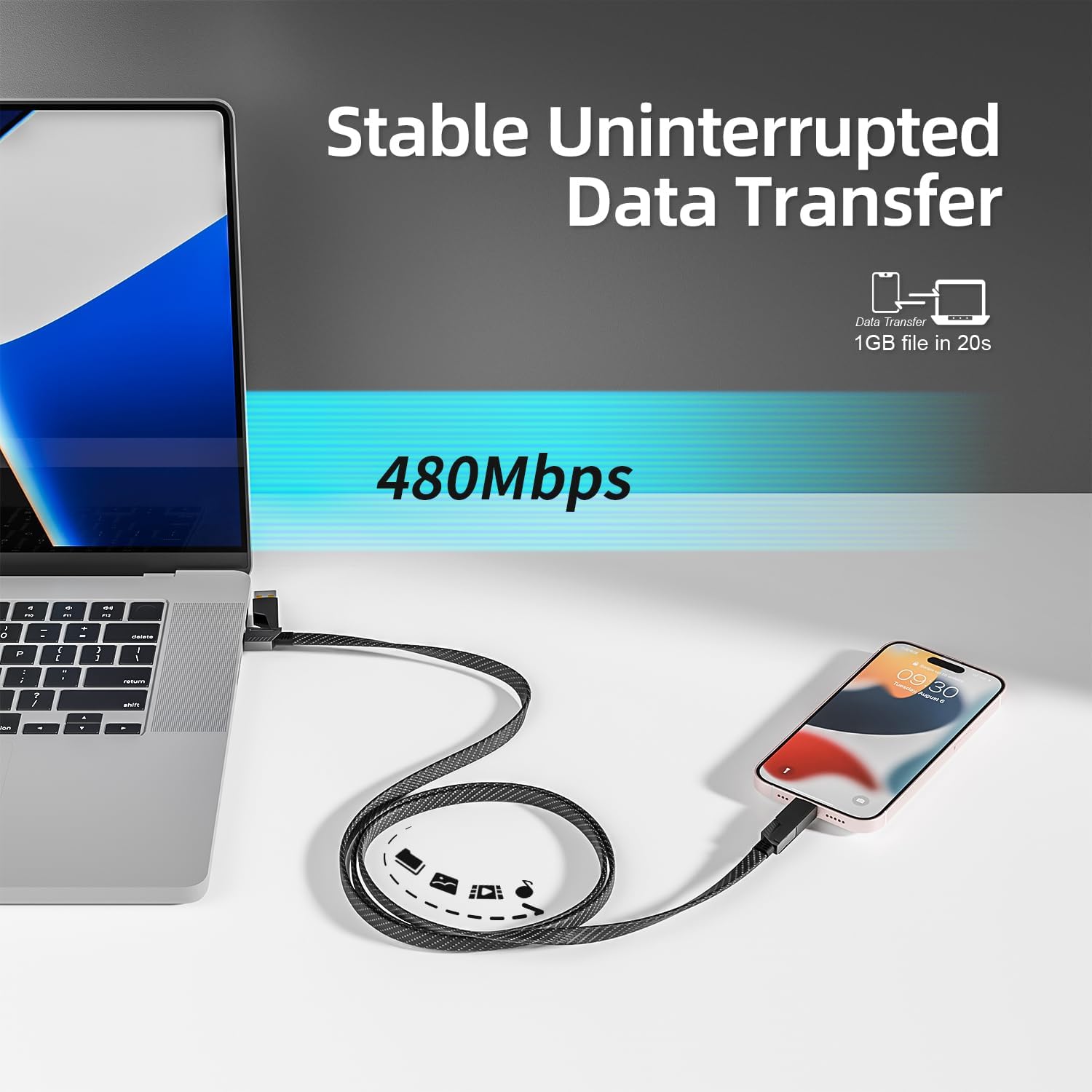 - Support Carplay & Android Auto : This dual head type c 4-in-1 multi charging cable can work with carplay and Android Auto, allowing you to charge and navigate simultaneously. All Port Support Data Transfer, and the data sync speeds up to 480Mbps.Transfer a 1G file in just 30 seconds (Video/media output not supported).