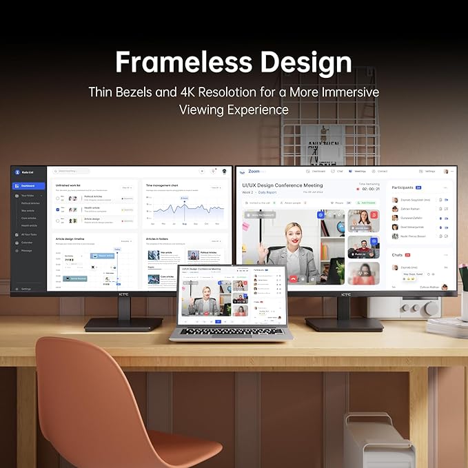 - [Edge-to-Edge Frameless Bezel Display] The frameless design reduces visual distractions, providing a wider view that enhances productivity and focus during work tasks. For users employing multiple monitors, the frameless design facilitates almost seamless multi-screen setups, creating an expansive workspace that is perfect for multitasking, data analysis, and professional presentations.