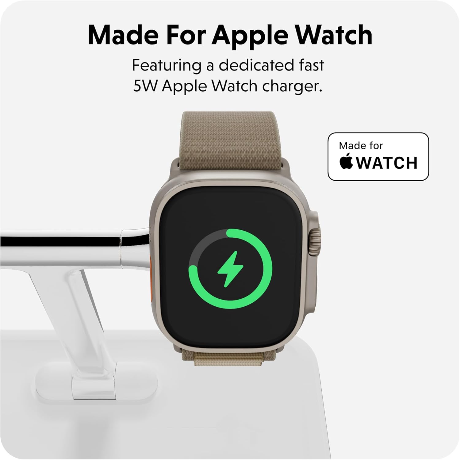 - Made for Apple Watch: Designed with a 5W charging pad made specifically for the Apple Watch, this Qi Charger iPhone and Watch Stand is perfect for keeping your device ready to use anytime, anywhere.