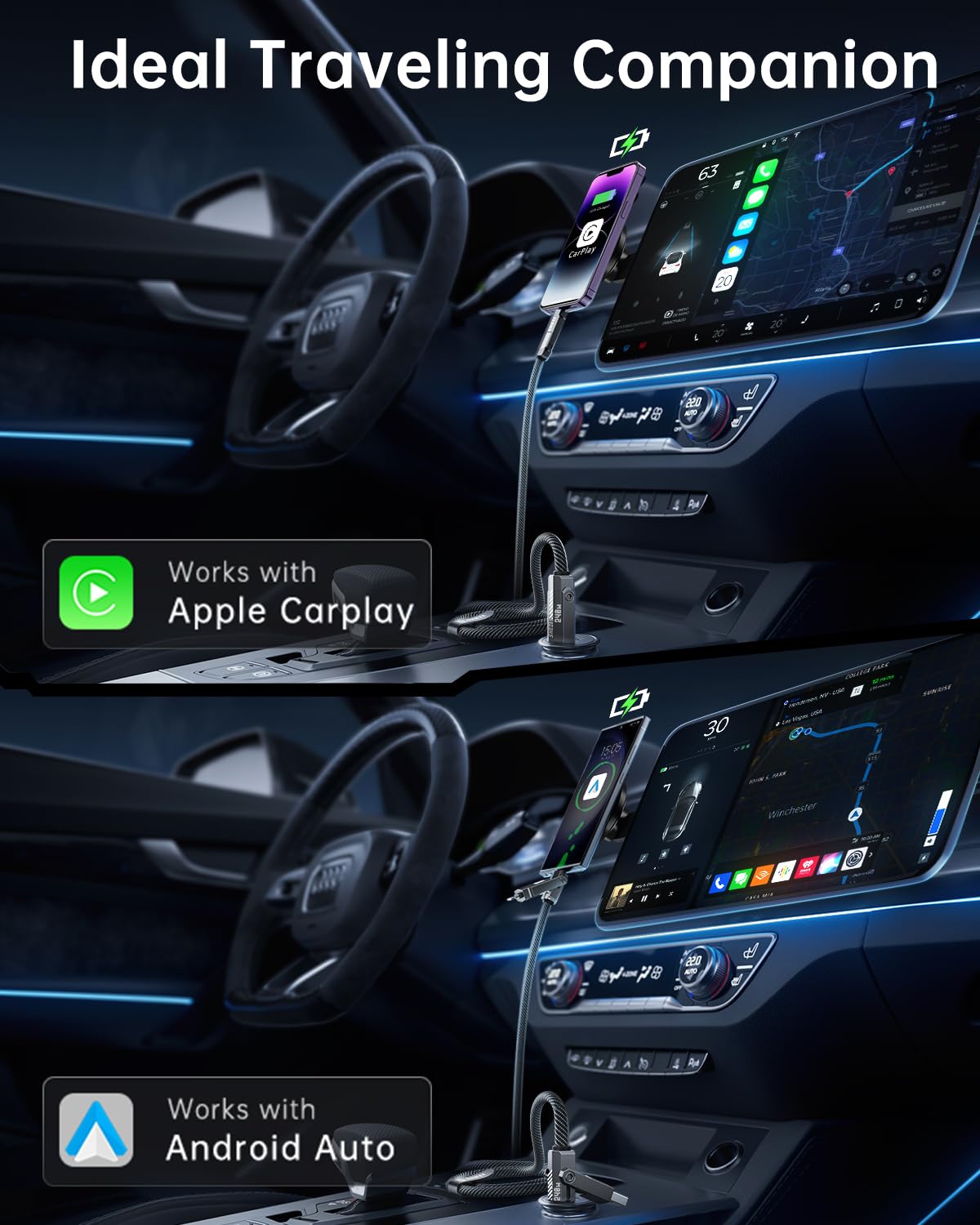 - Apply Carplay & Android Auto Support: The SHEZI 4-in-1 charging cable can be compatible with Apple CarPlay and Android Auto System. Keeps stably connected during the whole driving journey. But before using CarPlay, please confirm whether your vehicle supports the CarPlay system.