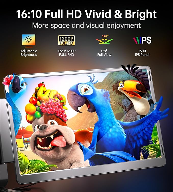 - 1200P FHD & 16: 10 IPS SCREEN FOR HIGH QUALITY DISPLAY: FOPO triple screen laptop monitor extender features 16:10 aspect ratio for wider operating space and visual range, 1920x1200 Full HD resolution, 1000: 1 contrast ratio, 178° view angle, 60 HZ refresh rate, each screen extender can be individually customized to adjust brightness, IPS screen technology provides a brighter, more vibrant visual experience.