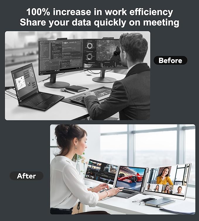 - TRIPLE MONITOR & 300% EFFICIENT: FOPO 14” laptop screen extender adds 2 new screens to your laptop's daily work, easily open multiple windows and multitask at the same time, increase your productivity up to 300% and save more time. Perfect for designers, remote workers, travelers, online meetings, IT workers, stock traders, investment professionals and anyone who needs a more efficient workflow.