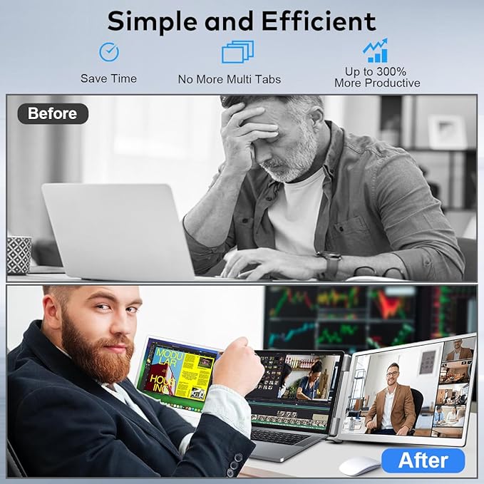 - 【TRIPLE MONITORS, 300% PRODUCTIVITY BOOST】 Add two extra screens to your laptop with FQQ Laptop Screen Extender. Effortlessly run multiple windows and multitask simultaneously, boosting productivity by up to 300% and saving valuable time. Ideal for designers, remote workers, frequent travelers, online meeting attendees, IT professionals, stock traders, investors, and anyone seeking a more efficient workflow.