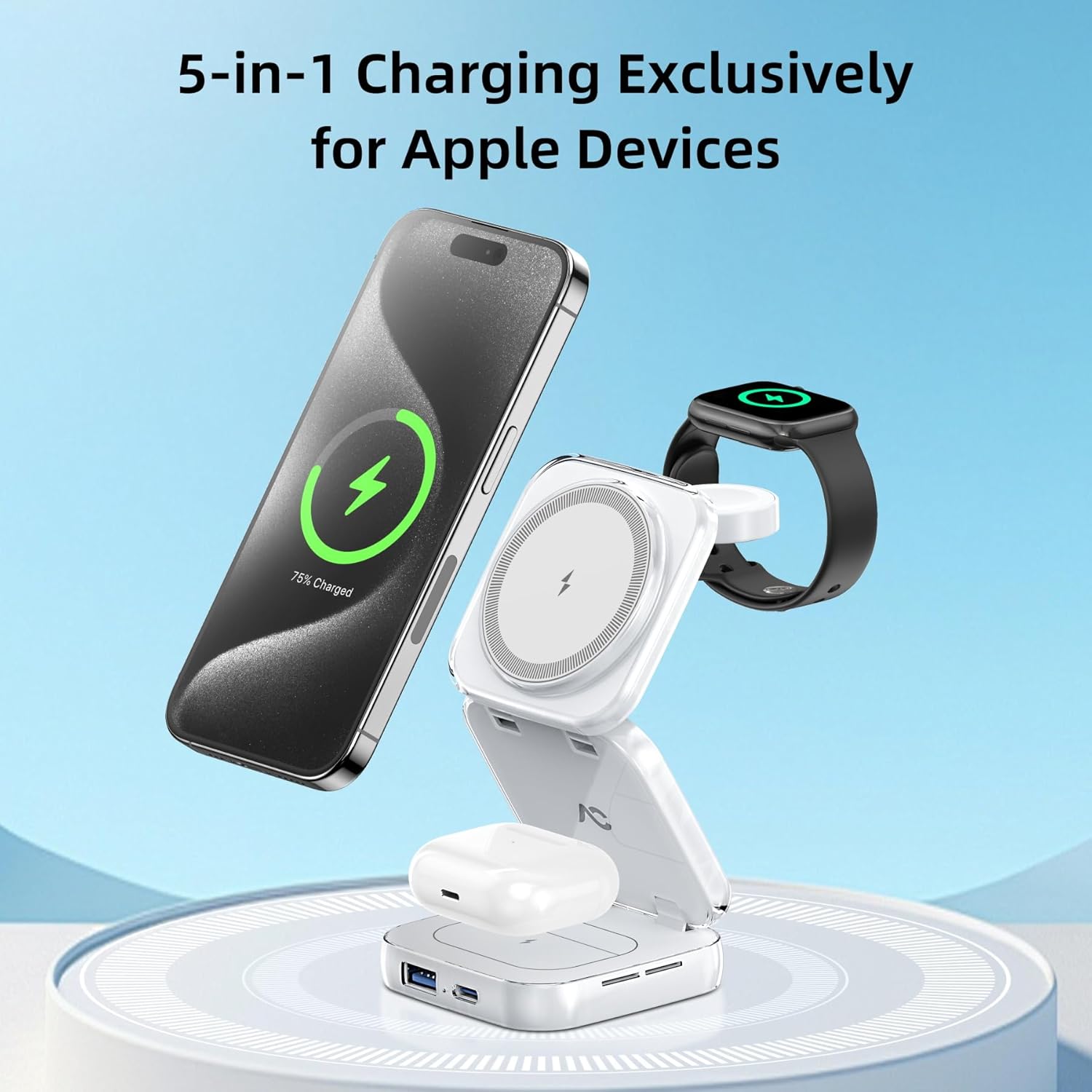 - Upgraded 5 in 1 Exclusively for Apple: Revolutionize your charging with our upgraded USB-C & USB-A base, transforming the conventional 3-in-1 station. Experience a comprehensive wireless charging solution for your iPhone, iWatch, AirPods, iPad, and even power banks or Android devices. Note: USB-C & USB-A ports deliver full speed for one device and smartly adjust when two are charged simultaneously