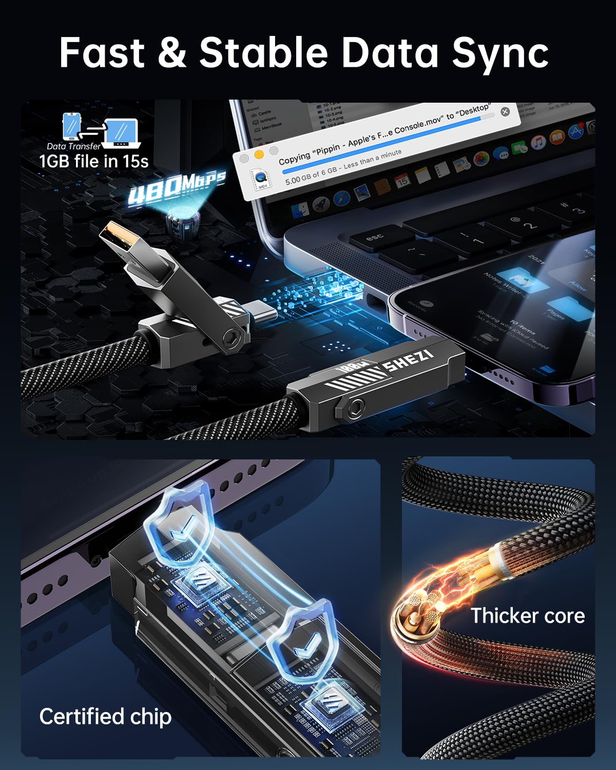 - Apply Carplay & Android Auto Support: The SHEZI 4-in-1 charging cable can be compatible with Apple CarPlay and Android Auto System. Keeps stably connected during the whole driving journey. But before using CarPlay, please confirm whether your vehicle supports the CarPlay system.