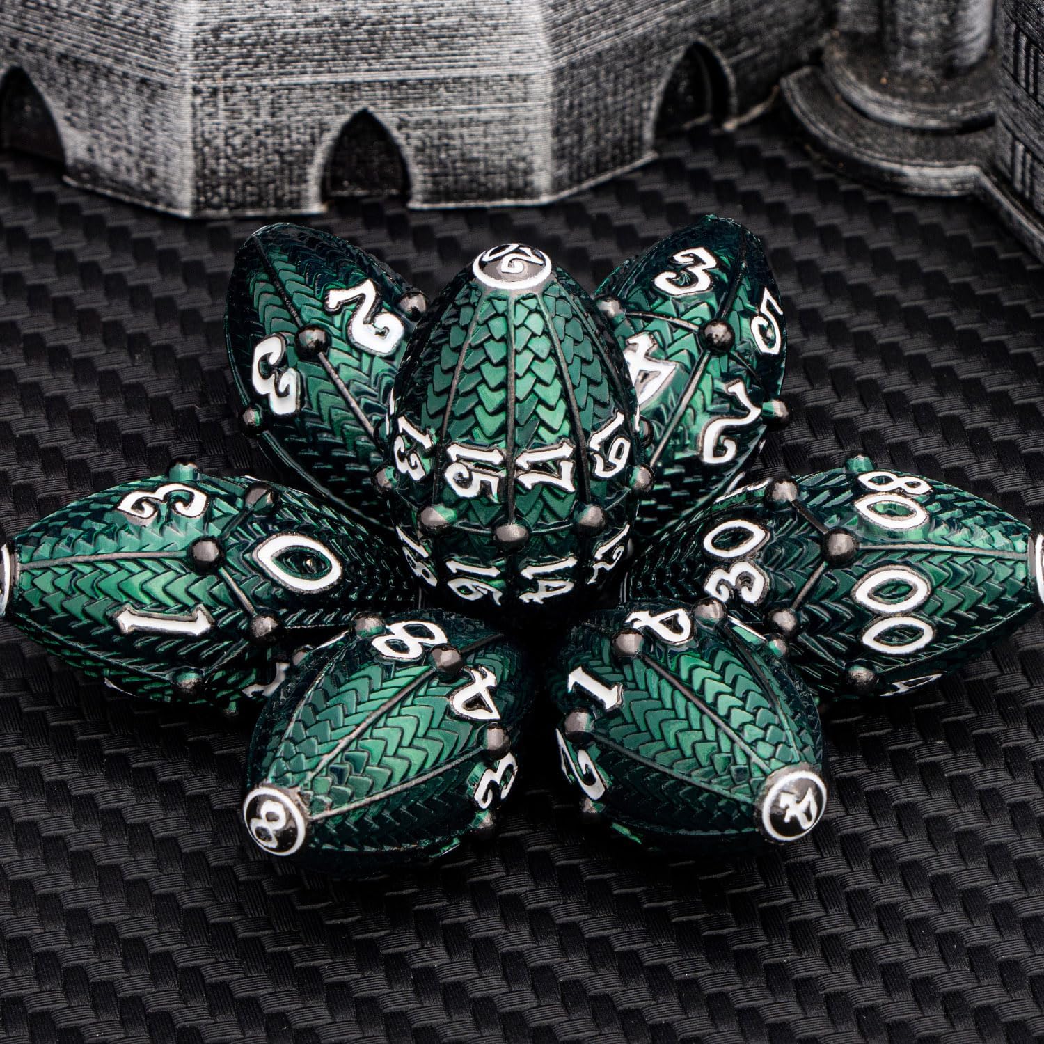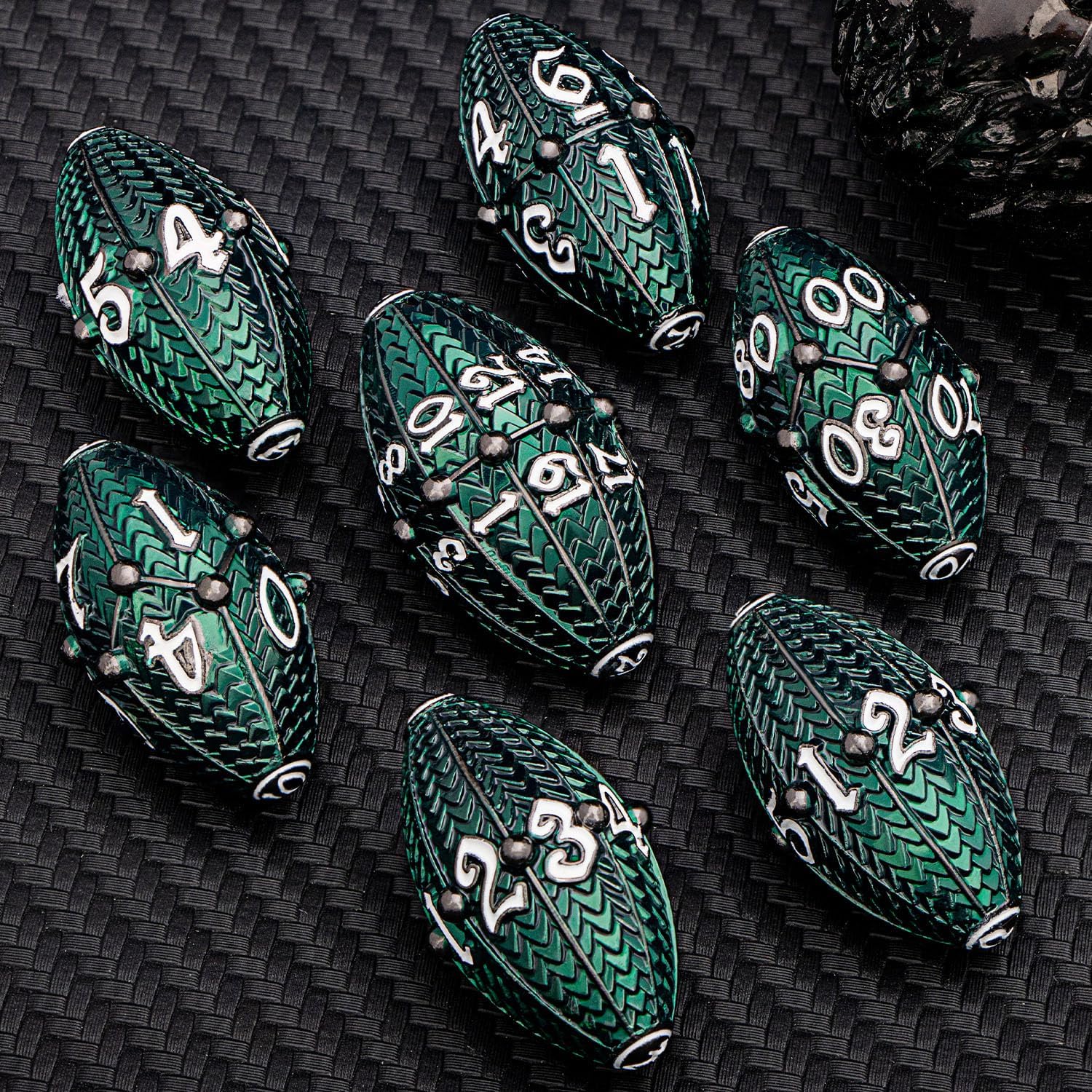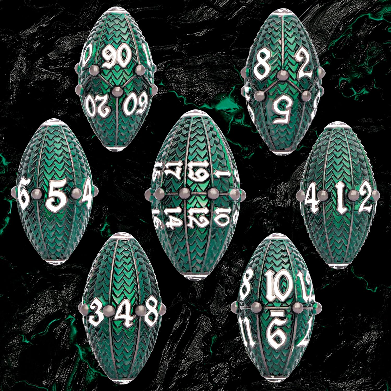 - 【Premium Craftsmanship】: Every detail, from scale engravings to the balance of dice, showcases superior craftsmanship. Made from environmental zinc alloy, Clear and readable numbers. RPG dice roll randomly, making the game full of randomness.