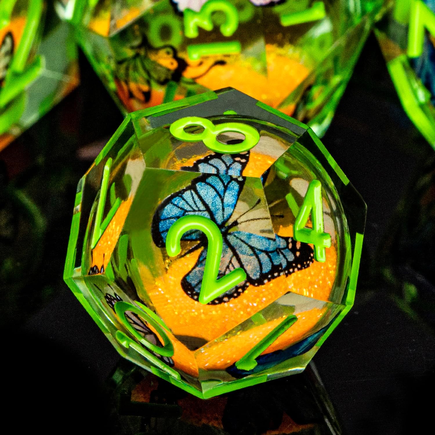 - Liquid Core Dice: At the heart of resin dice lies a transparent sphere, filled with shimmering liquid sand that moves gracefully with every roll. This unique design adds a mesmerizing visual element to your game experience.