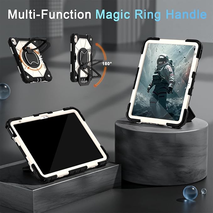 Case for iPad (A16) 11th Generation 11 Inch (2025) iPad 10th Generation 10.9 Inch (2022),Shockproof i Pad Case 11.0/10.9 Inch with 360° Rotatable Folding Handle Stand,Black Beige