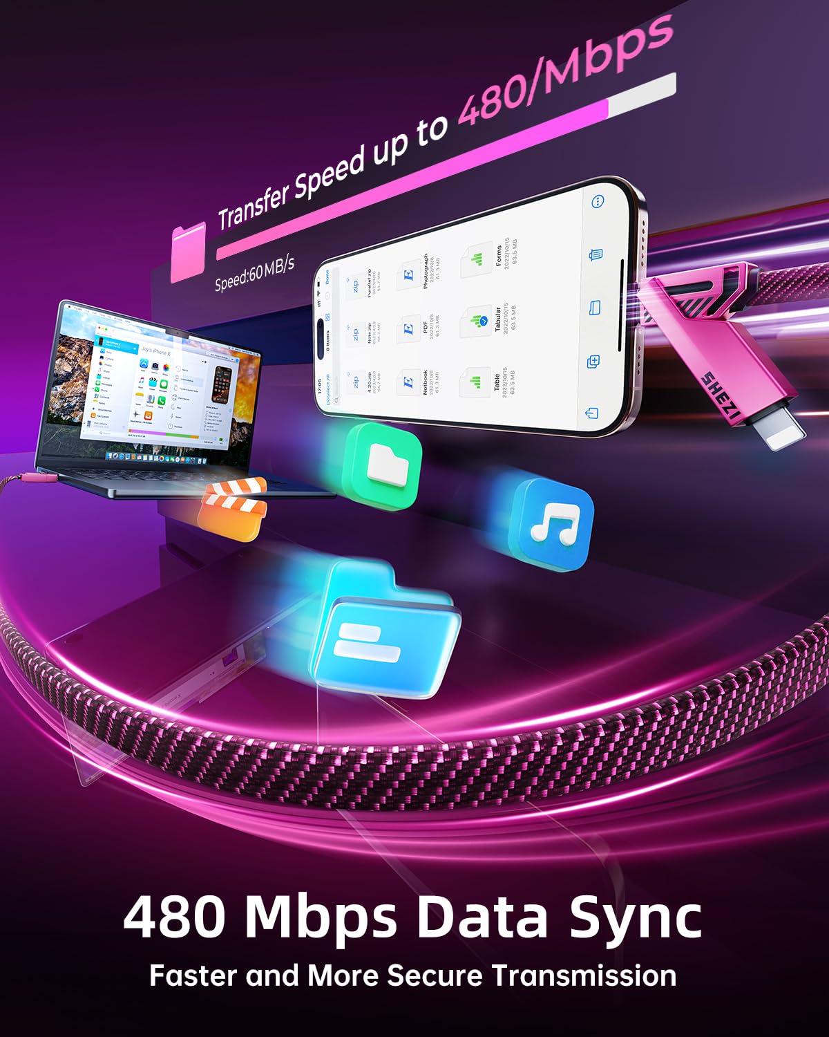 - 480Mbps Data Transfer-USB 2.0: With a speed of up to 480Mbps, our iPhone cables can handle most data transfer tasks, such as syncing music, photos, and documents between devices quickly and efficiently. Note: USB 2.0 Cable do not support video transfer