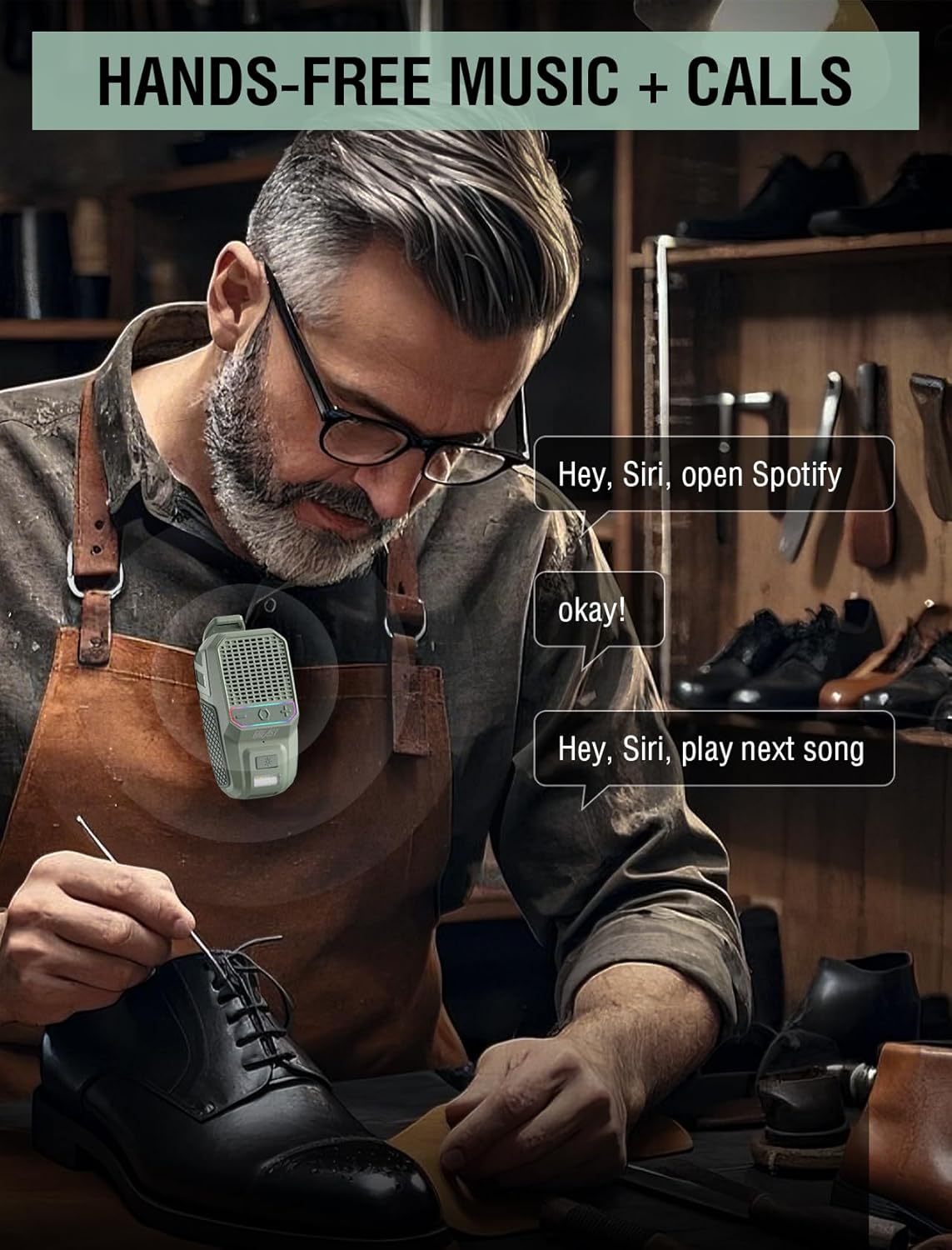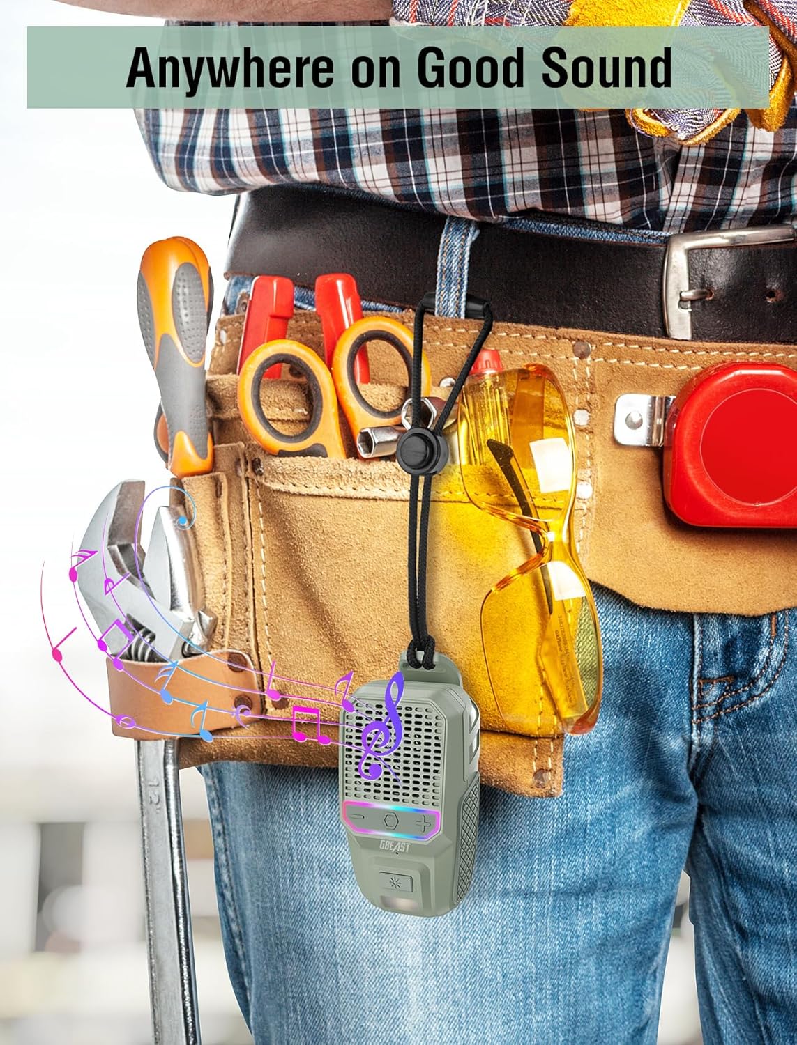 - 【Hands-Free Calls & Music】 GBEAST wearable bluetooth speaker built-in ENC noise-canceling mics for clear calls. It can via clip/lanyard (included) wear to tool belts/clothes collar/backpacks/bike handlebars with one-handed operation. Bluetooth 5.4 + 85% stereo music give you a 360° depth experience when you call or play music.