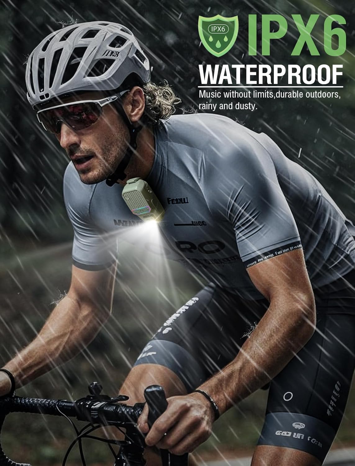 GBEAST Wearable Bluetooth Speaker with RGB/Flashlight, IPX6 Waterproof Clip-On Portable Speaker with 30H Playtime - Built-in Mic Hands-Free for Jobsite/Outdoor/Golf, TWS Portable Speakers (Green)