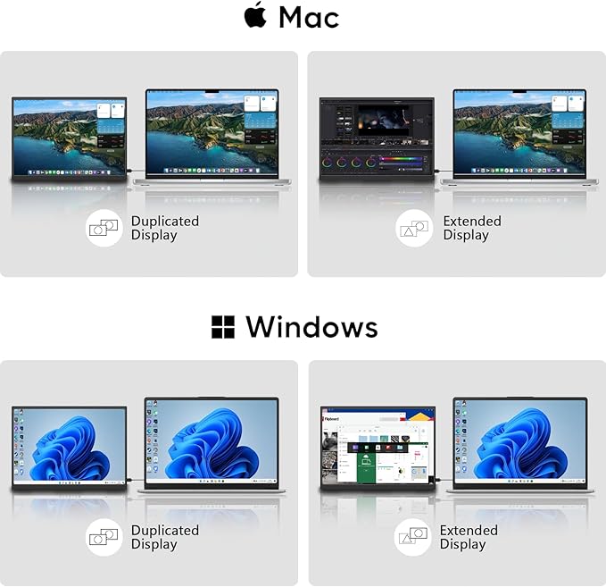 - [ High-definition Display ]: With its 3:2 aspect ratio, this external screen maximizes vertical space, reducing the need for constant scrolling. Perfect for spreadsheets, coding, and multitasking, it helps you stay efficient even on the move. (Note: If your monitor is 1920 * 1080, input can only be 1920 * 1080, if your laptop has a 3:2 ratio, output can be 1920 * 1280)