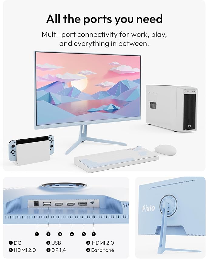- Experience the future of gaming with the Pixio PX279 Wave Blue, a high-performance monitor that delivers lightning-fast refresh rates, stunning visuals, and seamless gameplay. Its 27-inch FHD 1080p Fast IPS panel delivers stunning visuals with wide viewing angles and vibrant colors. The blazing-fast 240Hz refresh rate and 1ms GTG response time ensure smooth, tear-free gameplay, while Adaptive Sync technology eliminates screen tearing and stuttering.