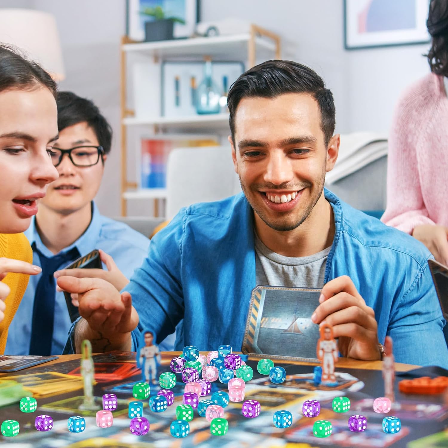 - Durable and Quality: crafted from acrylic, these six-sided colored dice are built to last; The smooth surface and clear, durable points ensure a satisfying and consistent rolling experience; With their traditional pips, you can enjoy using these dice repeatedly without worrying about any wear and tear or fading