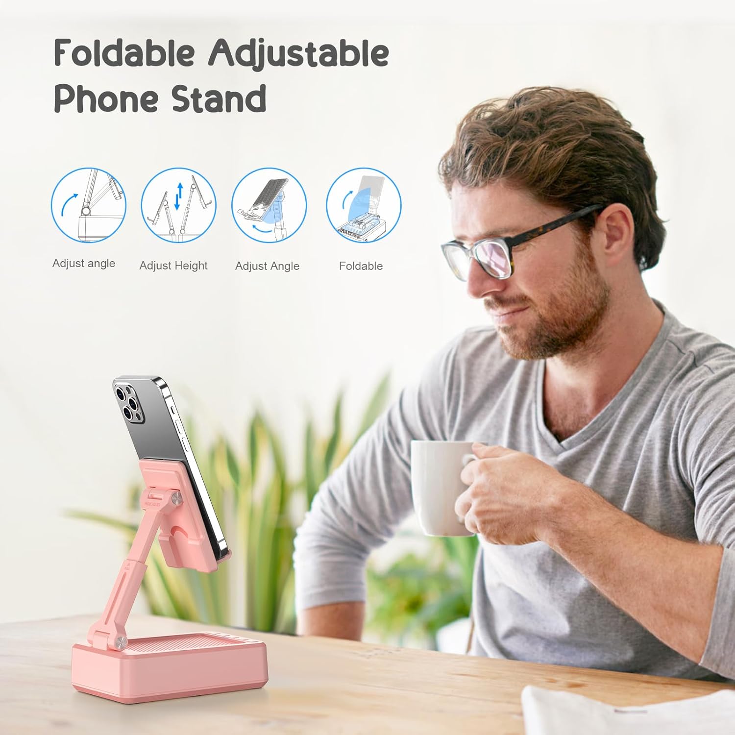 TechGlow Gifts for Men Women Foldable Cellphone Stand with Bluetooth Speaker and Power Bank Birthday Gift Idea for Mom Dad Cool Gadget Tech Gifts-Pink