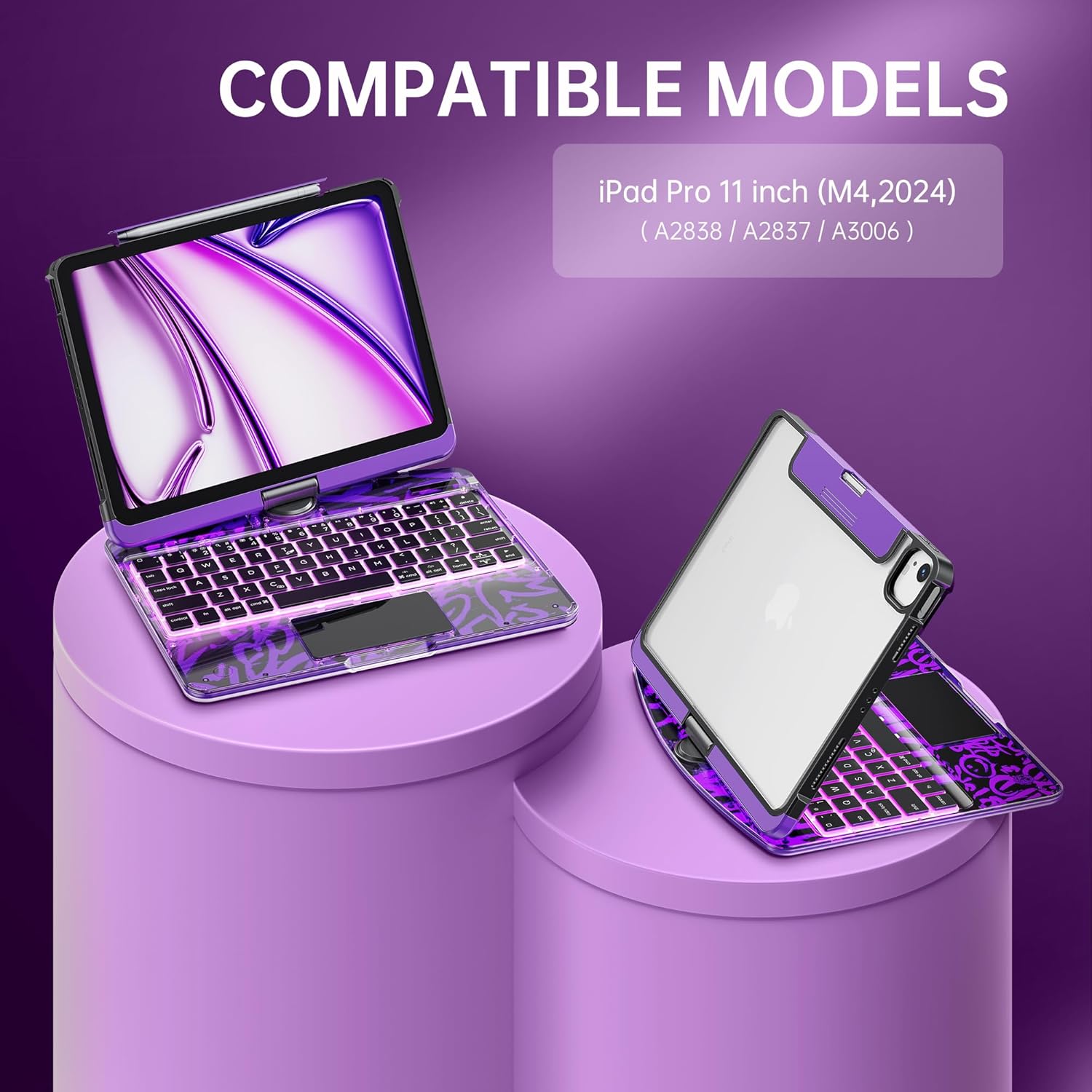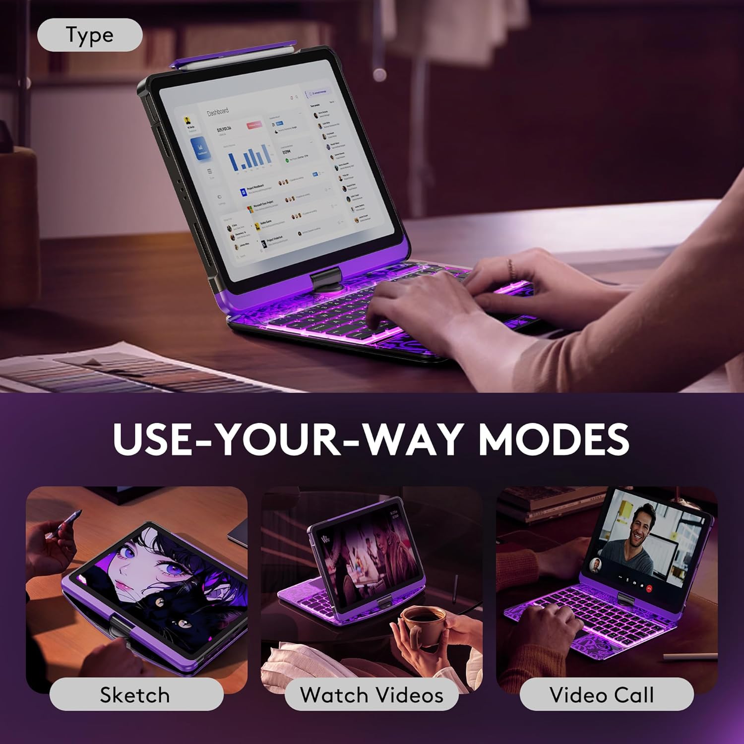 - 360° Rotating Stand & Multi-Angle Viewing: Enjoy full flexibility with the 360° swivel stand, offering 5 adjustable viewing angles. Whether you're typing, sketching, or watching a movie, seamlessly shift your iPad for maximum comfort and productivity in any mode.