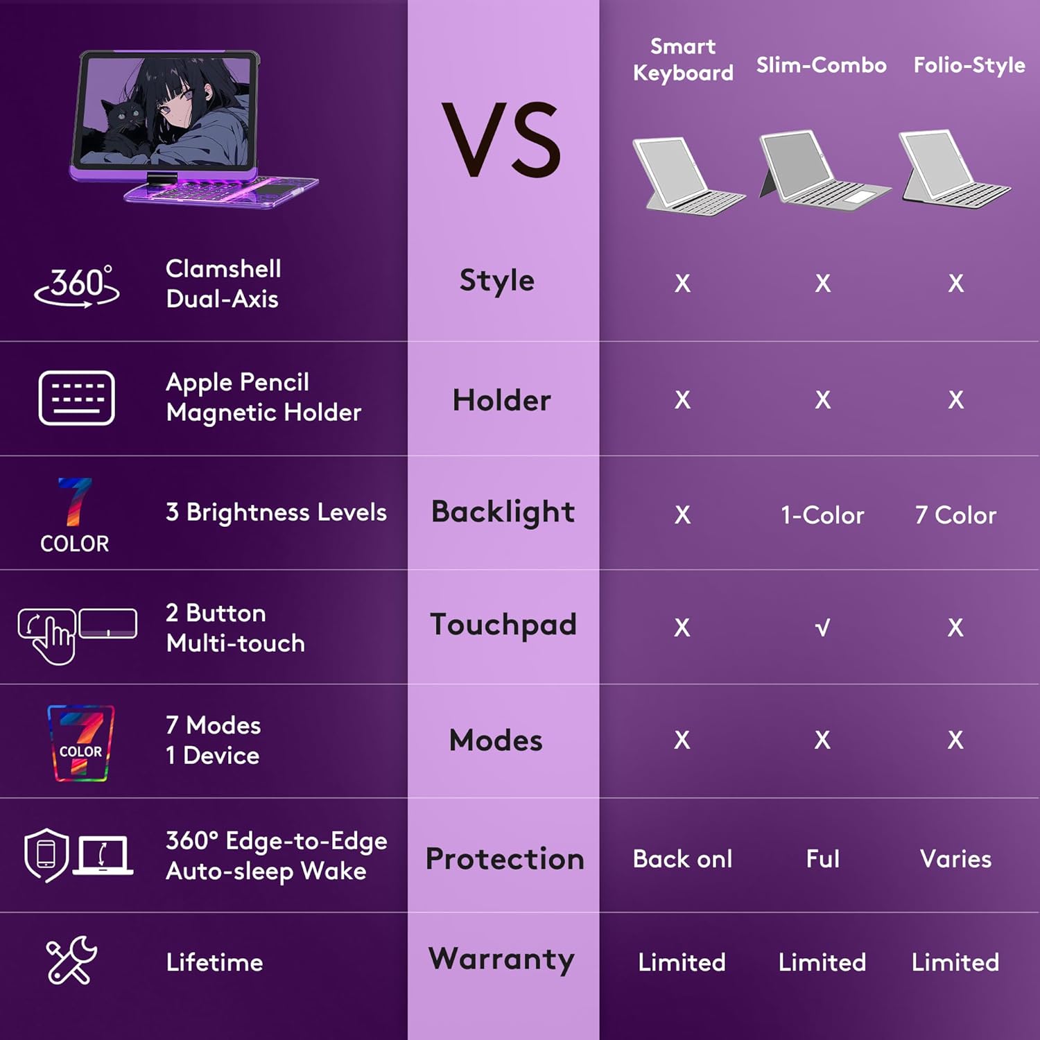 - Wireless Keyboard with Precision Trackpad: Boost your iPad's functionality with a built-in wireless keyboard and precision touchpad for easy navigation and editing. Perfect for professionals, students, and creatives who need laptop-like control on the go.