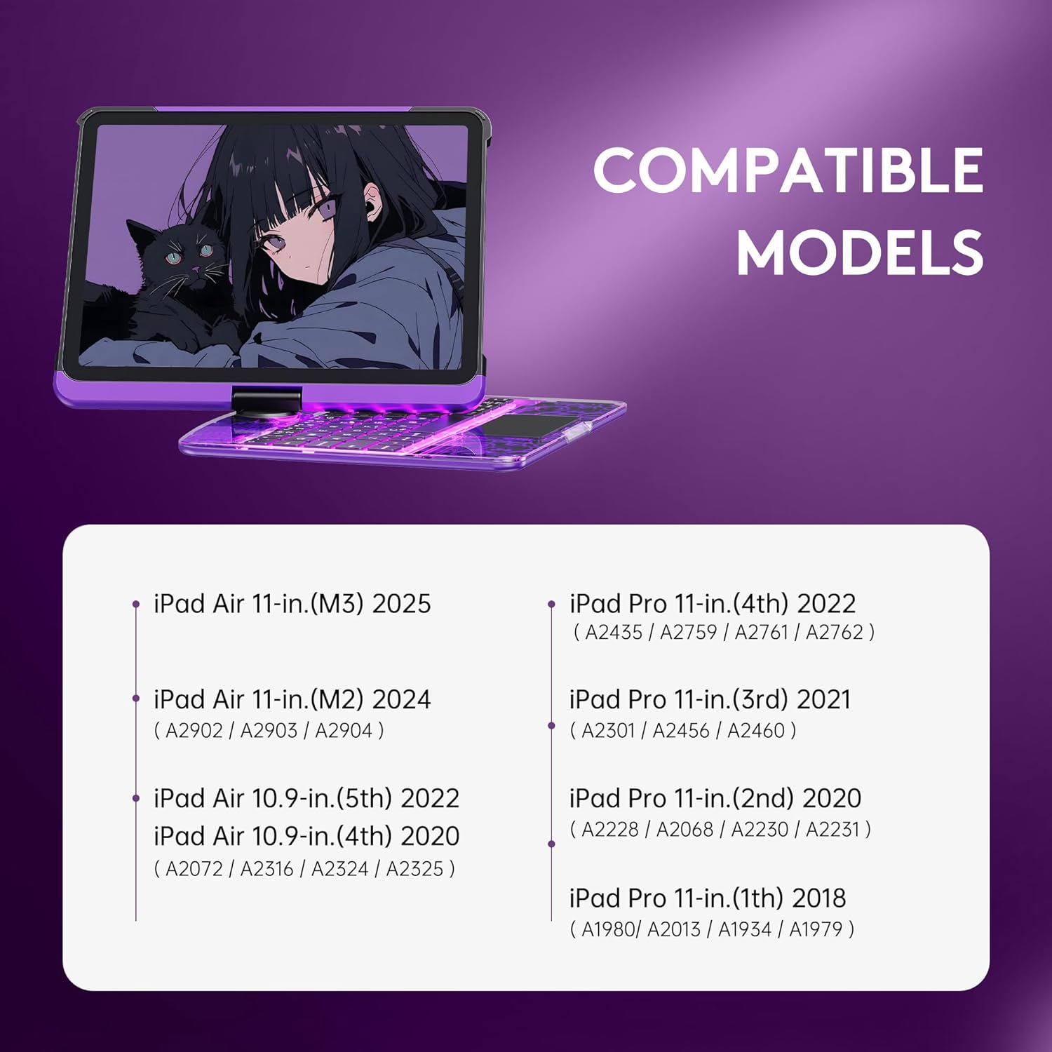 - Compatible Devices : iPad Air 11-in.(M3) 2025; iPad Air 11-in.(M2)2024; iPad Air 10.9-in.(5th)2022; iPad Air 10.9-in.(4th)2020; iPad Pro 11-in.(4th)2022; iPad Pro 11-in.(3rd) 2021; iPad Pro 11-in.(2nd)2020;iPad Pro 11-in.(1th)2018 iPad Air 11-in.(M3) 2025; iPad Air 11-in.(M2)2024; iPad Air 10.9-in.(5th)2022; iPad Air 10.9-in.(4th)2020; iPad Pro 11-in.(4th)2022; iPad Pro 11-in.(3rd) 2021; iPad Pro 11-in.(2nd)2020;iPad Pro 11-in.(1th)2018