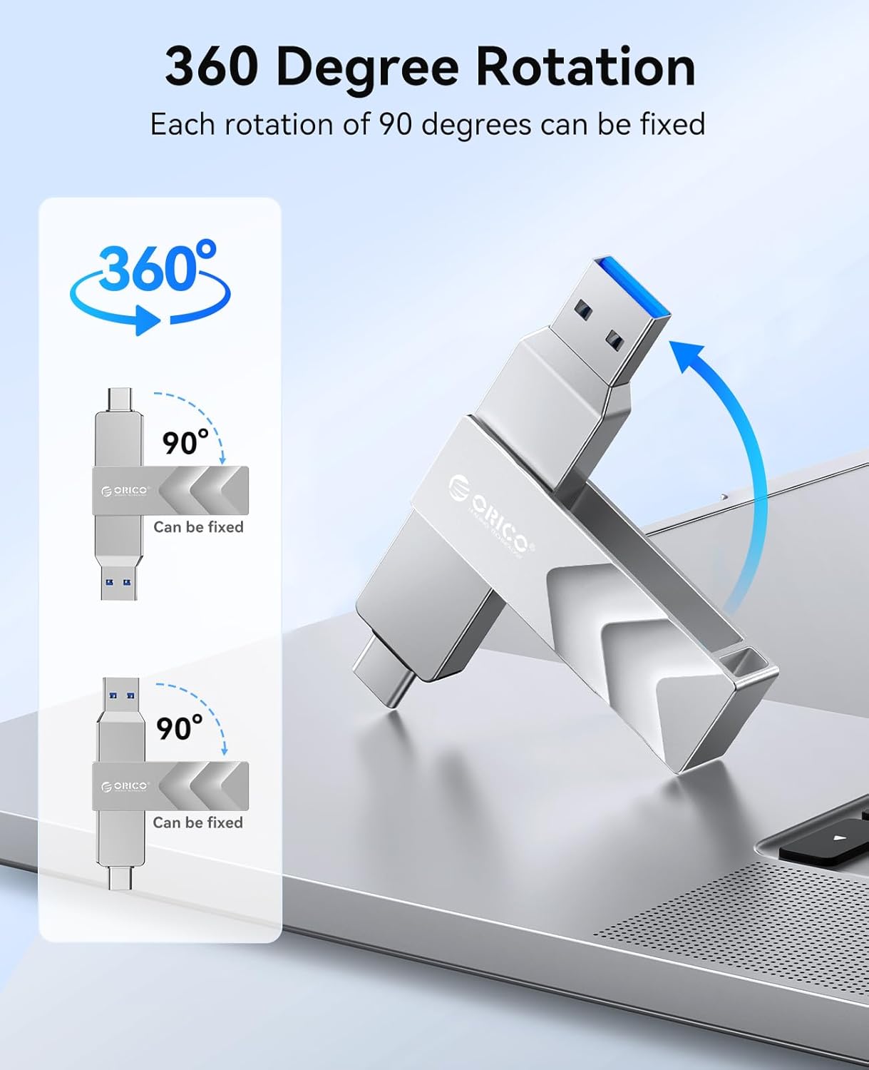 - Versatile Dual Interface Design: Dual-interface with 360-degree rotation and 90-degree lock for seamless compatibility across USB C and USB A devices, ensuring secure connections and efficient data transfer