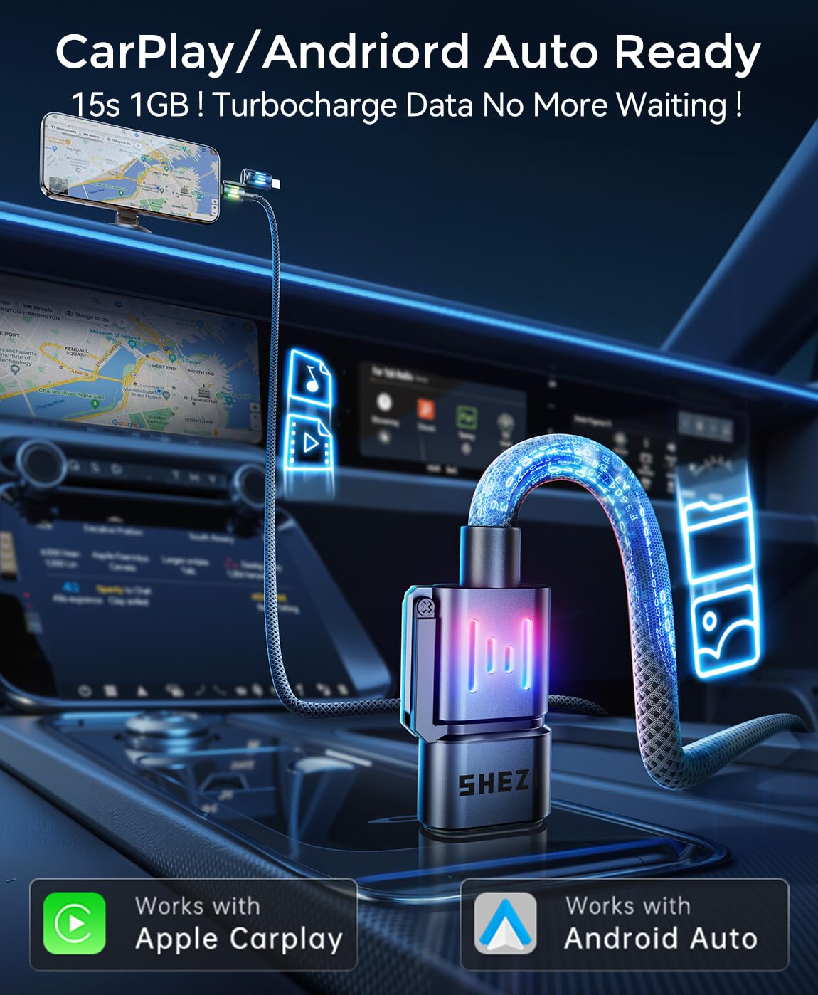 - Support CarPlay & Android Auto:This usb c charger 100% supports both Android Auto and Carplay which charging and navigating at the same time. Seamlessly toggle between USB-C and Lightn-ing connectors with a simple twist, granting you instant access to the power of CarPlay and Android Auto.