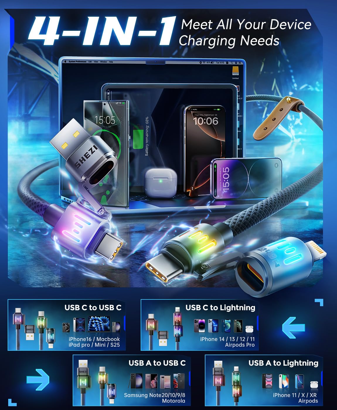 ![SHEZI 4-in-1 USB C Cable [240W Fast Charging & Data Transfer] Nylon iPhone Charger Cord with Light, Multi Charge Cables Combo with L/Type C/USB A Port for iPhone/iPad/Samsung, 5FT](http://tech-novas.com/cdn/shop/files/71Q7m-KpAXL._SL1398.jpg?v=1761656508&width=1445)