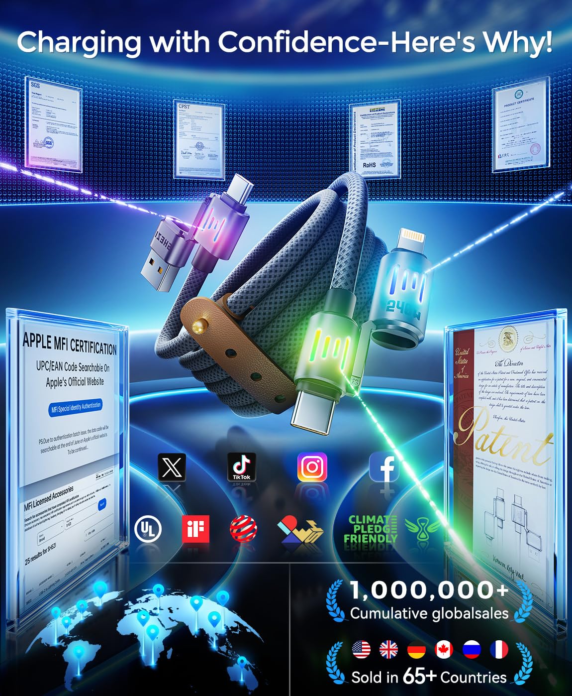 - Time-Saving 240W Fast Charging: This usb to usb c cable features an enhanced MFi fast charging chip for the world's fastest charging speed. Fully charge a iPhone 16 Pro Max to 96%, a Samsung S24 to 96%, a MacBook Pro to 86% and an iPad Pro to 89% in 35 minutes. Say goodbye to endless charging reminders and endless charging waits.