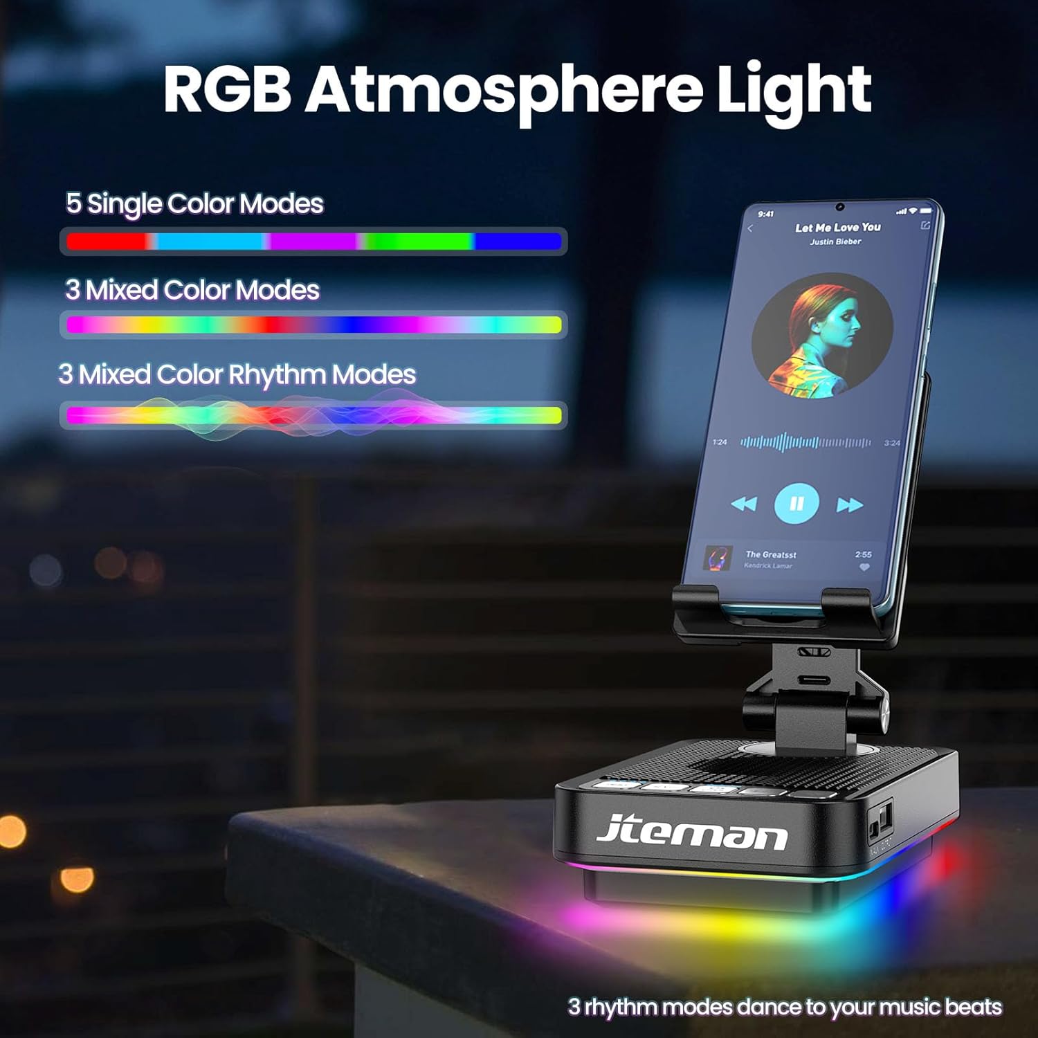 JTEMAN Gifts for Men Women Phone Stand Bluetooth Speaker with Light and Power Bank, 360 Rotating Phone Holder Cool Tech Gifts for Dad Mom Husband Unique Birthday Gift Ideas