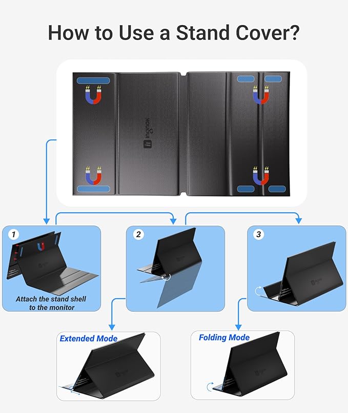 - [Boost Productivity Anywhere, Anytime] Ingnok Portable Monitor for Laptop turns any space—a hotel desk, kitchen table, or conference room—into a dual-screen workstation. Easily compare files, take notes during meetings, or multitask with your favorite apps, all on your expanded view.