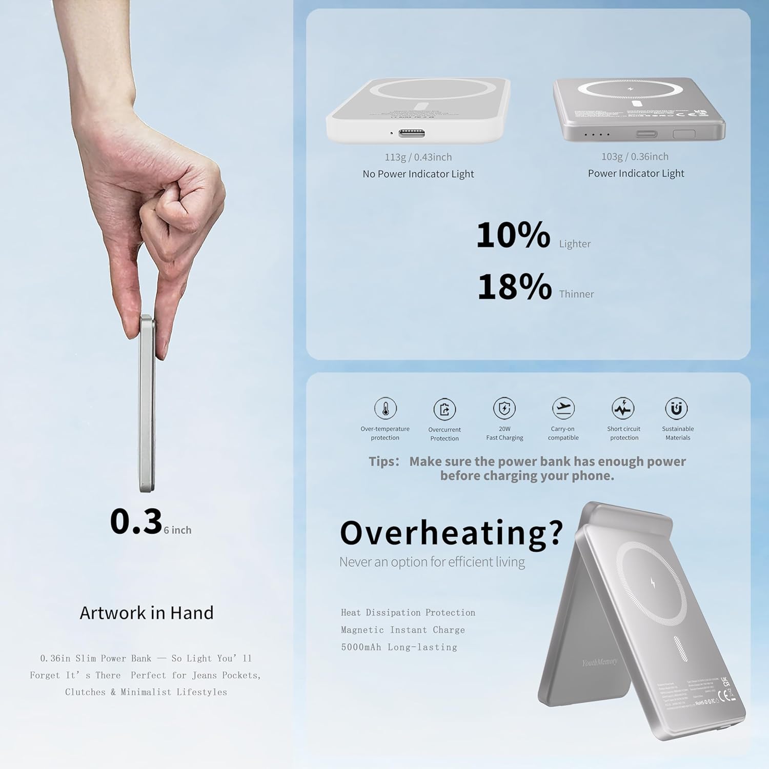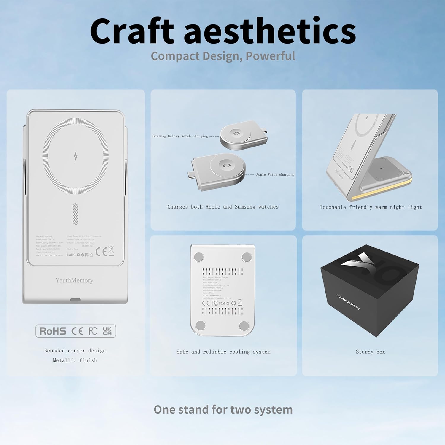 - 【Detachable & Portable Charger Power Bank Charger Stand Design】Our wireless charger station comes with a detachable 5000mAh slim power bank. Featuring a foldable, lightweight design, this charging station is ideal for home, office, travel or trip. Manufacturer designed it to fit easily into bags, it makes a thoughtful present for loved ones who need reliable charging on the go.