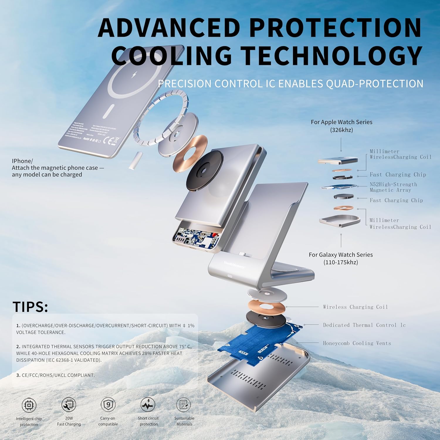 - 【Fast Charging & Strong Magnet Wiresless Charger】Equipped with 20W PD fast charging technology, coupled with 30% thick non-slip silicone base, ensure stability during high-speed charging. The exclusive 7N magnetic array, precisely matched with the iPhone magnetic coil and Samsung magnetic phone case, lets your phone firmly attached to it, perfect for exercising in the gym or outdoor adventure. This portable magnetic charging pile can be used as a stand at any time, free your hands and enjoy the beauty of life.