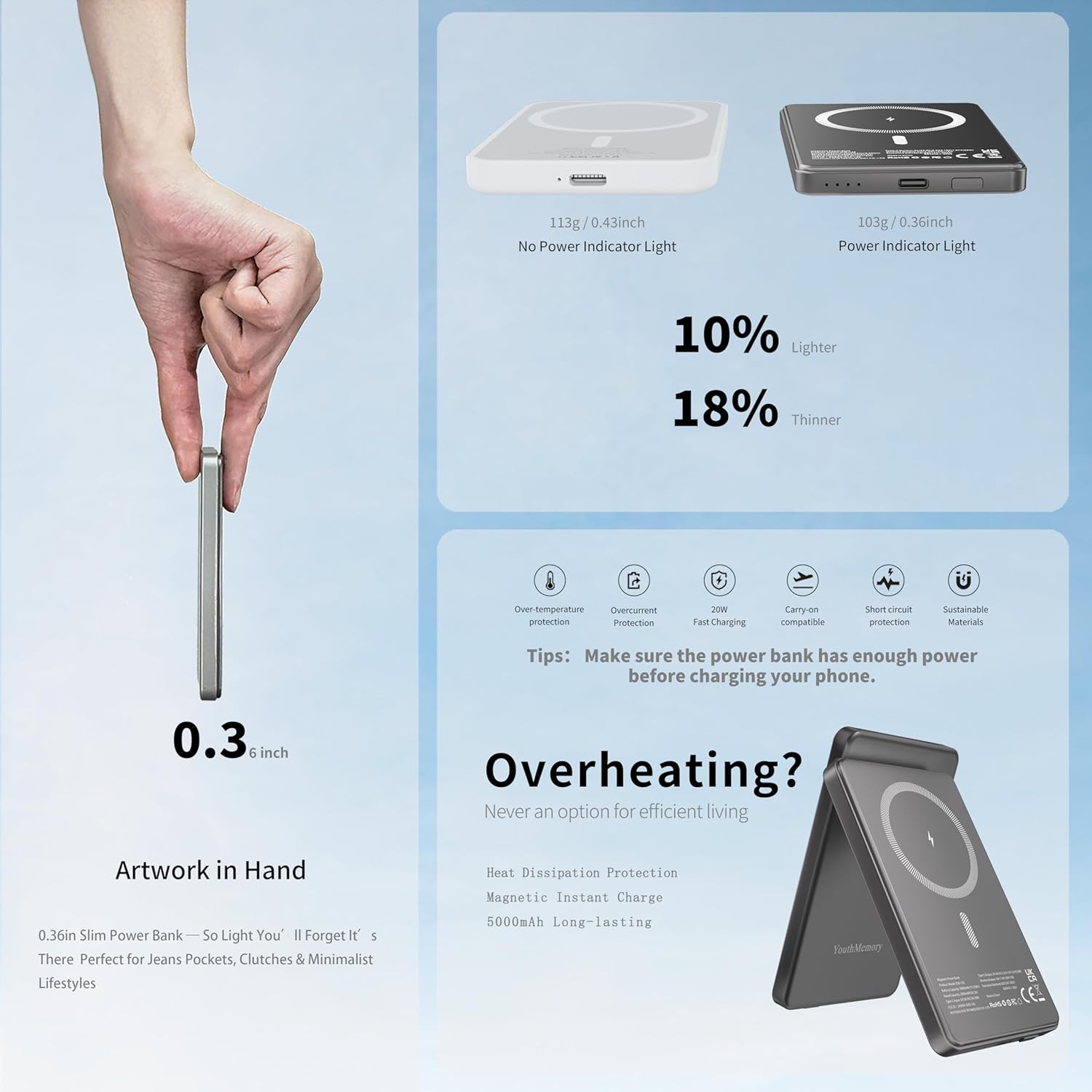 - 【Detachable & Portable Charger Power Bank Charger Stand Design】Our wireless charger station comes with a detachable 5000mAh slim power bank. Featuring a foldable, lightweight design, this charging station is ideal for home, office, travel or trip. Manufacturer designed it to fit easily into bags, it makes a thoughtful present for loved ones who need reliable charging on the go.