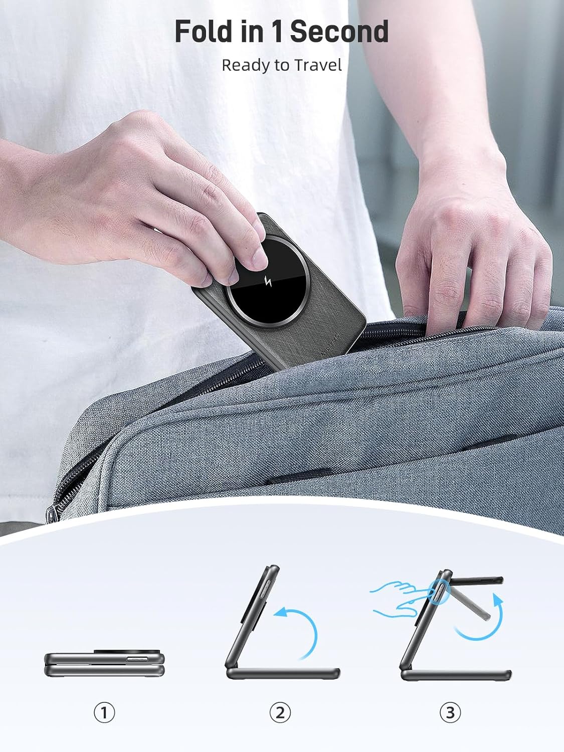 - Travel-Ready Samsung Wireless Charger: Its foldable design makes it perfect for people on the go. Plus, the charger, cable, adapter, storage bag, and one magnetic ring are all ready for you