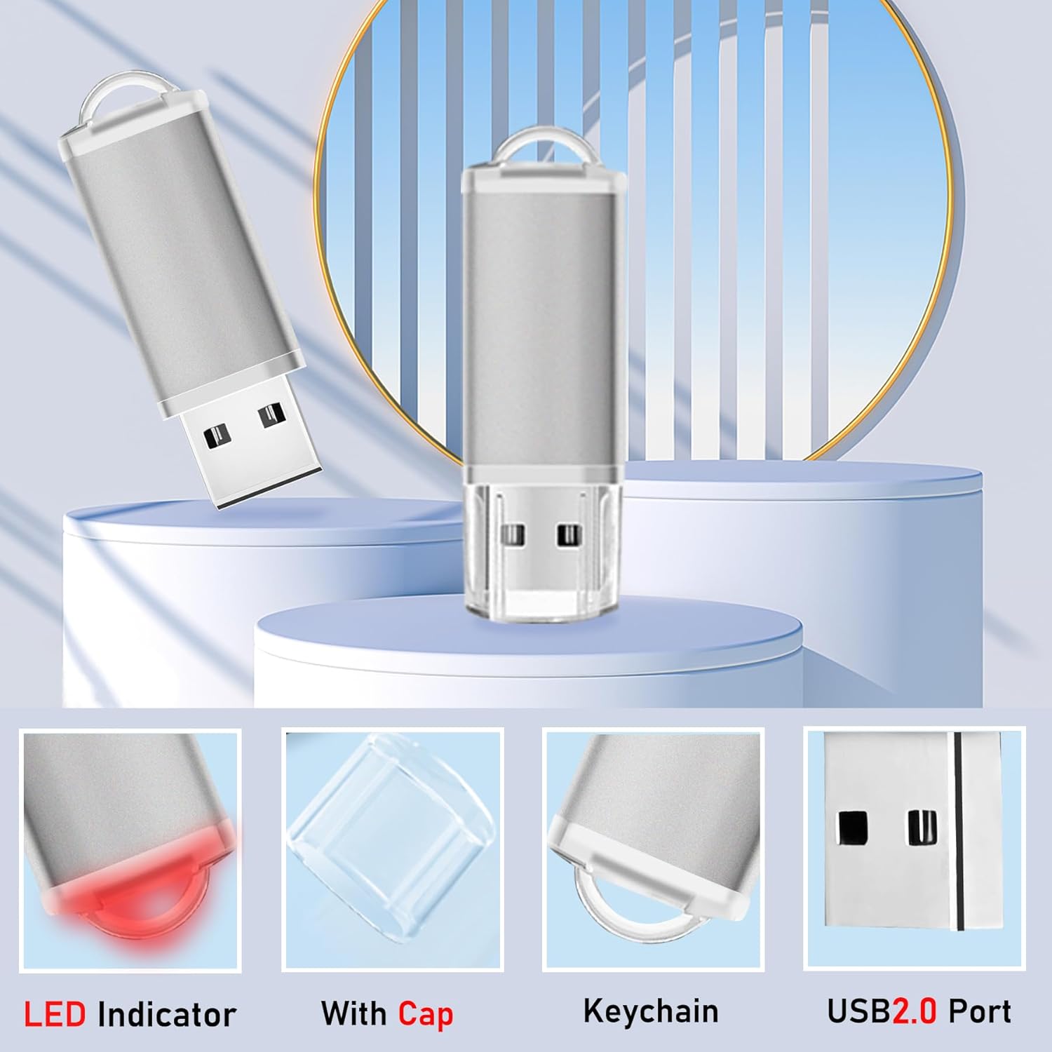 USB Thumb Drive 4GB Flash Drives 20 Pack, Nicepicten Memorias USB 2.0 Memory Stick FAT32 Flash Zip Drive 4 GB Jump Drives Multipack Pendrive with Landards and Lables (Sliver 4GB, 20 Pieces)