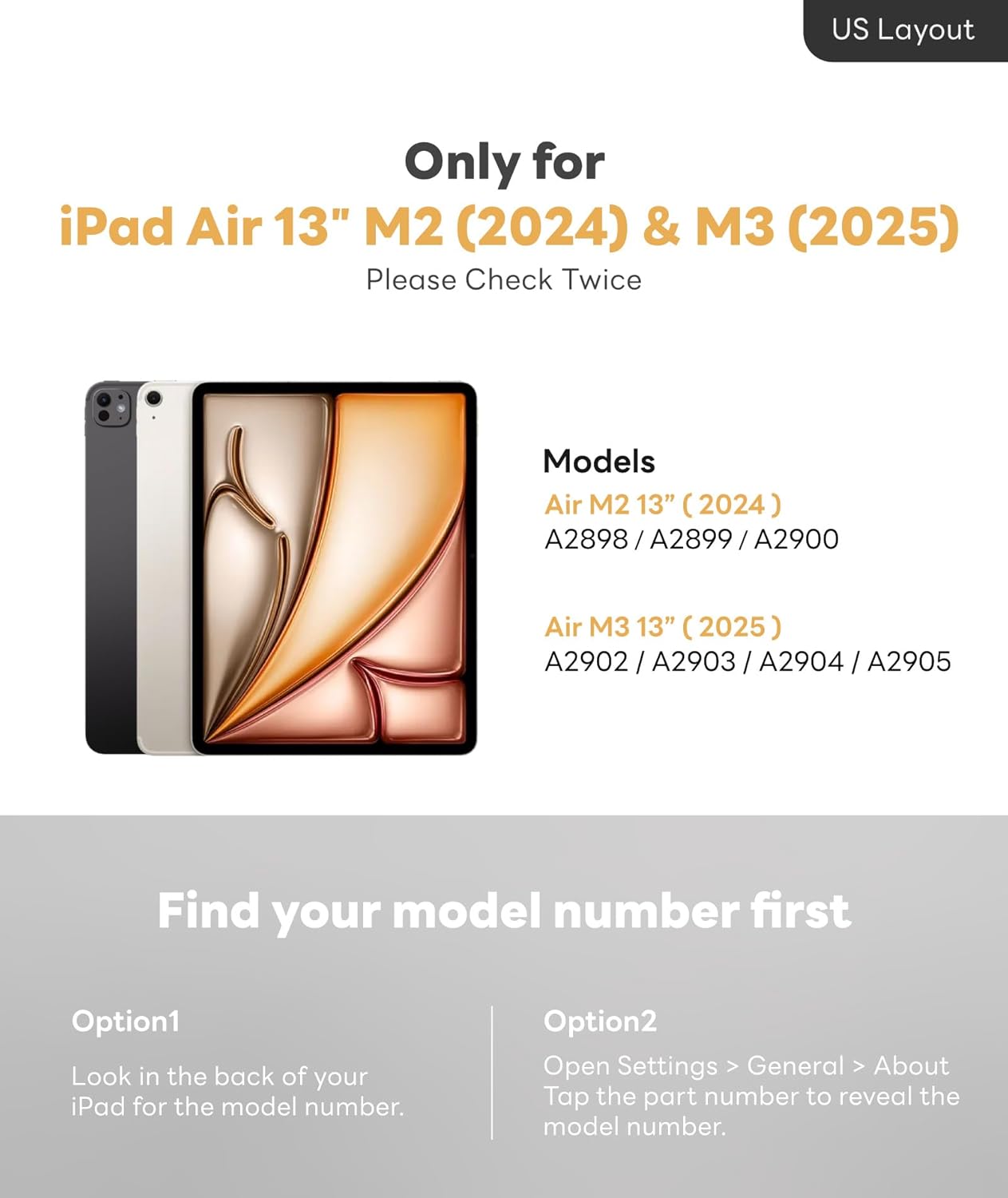 - 📖Compatibility - This keyboard case is designed specifically for the iPad Air 13-in. (M3/M2). ❗【Find Your Model】: Setting → General → About → Model Name and number
