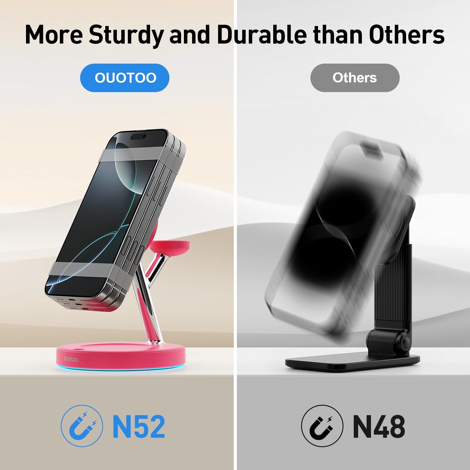 - 【Addressing overheating issues】:The product is made by combining electroplating technology and ABS environmentally friendly materials, making the charger bracket more stable and sturdy. Recently, the R&D department has made new breakthroughs in cooling materials and technology, which improve stability by more than 45%, increase charging speed by 18%, and lower the temperature by 37°F