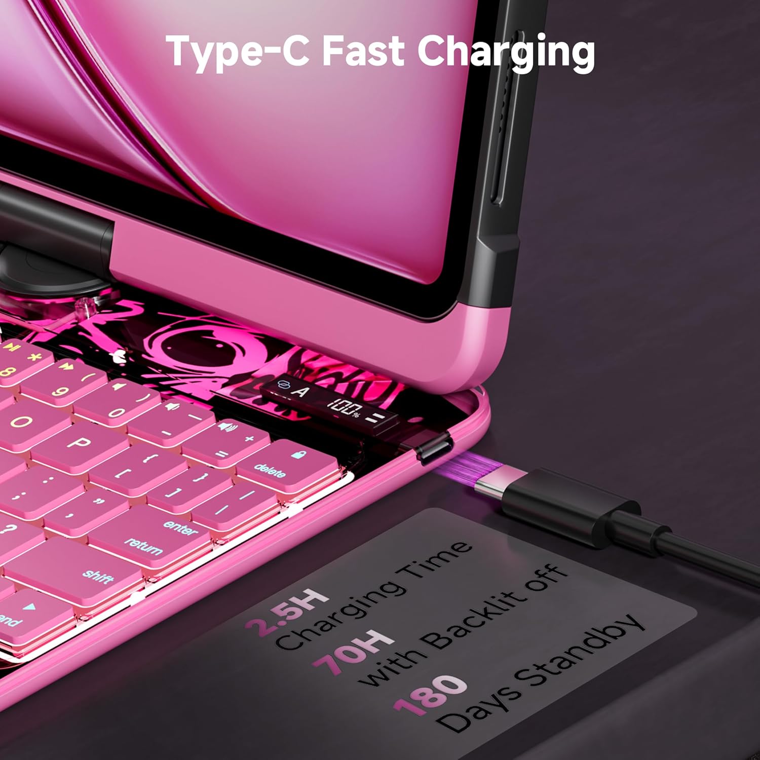 - Long-Term Use: without the use of lights under the premise, can be used for up to 32 days (daily average use of 8 hours). Intelligent LED digital display screen, real-time power. upper/lowercase and Bluetooth connection status, clear display and easy to observe.