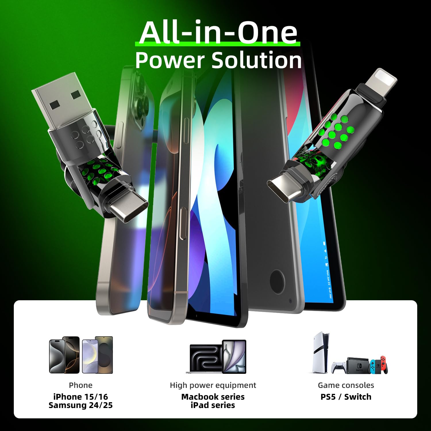 - MFish 4-in-1 Charging Cable: Universal Compatibility for iPhone 16/15,for Google Pixel 6/6 Pro/5/5a, for Galaxy S24/S23/S22/S21/S20/S20+/S20 Ultra, A53/A73/A71, Note 10/10+/20 Ultra, for Switch, for PS5 and other USB-C port devices, for iPads, MacBooks—one cable replaces four. Perfect for travelers, gamers, and multi-device households. Compatible with 65W/61W/45W/35W/30W/25W/20W USB C charger