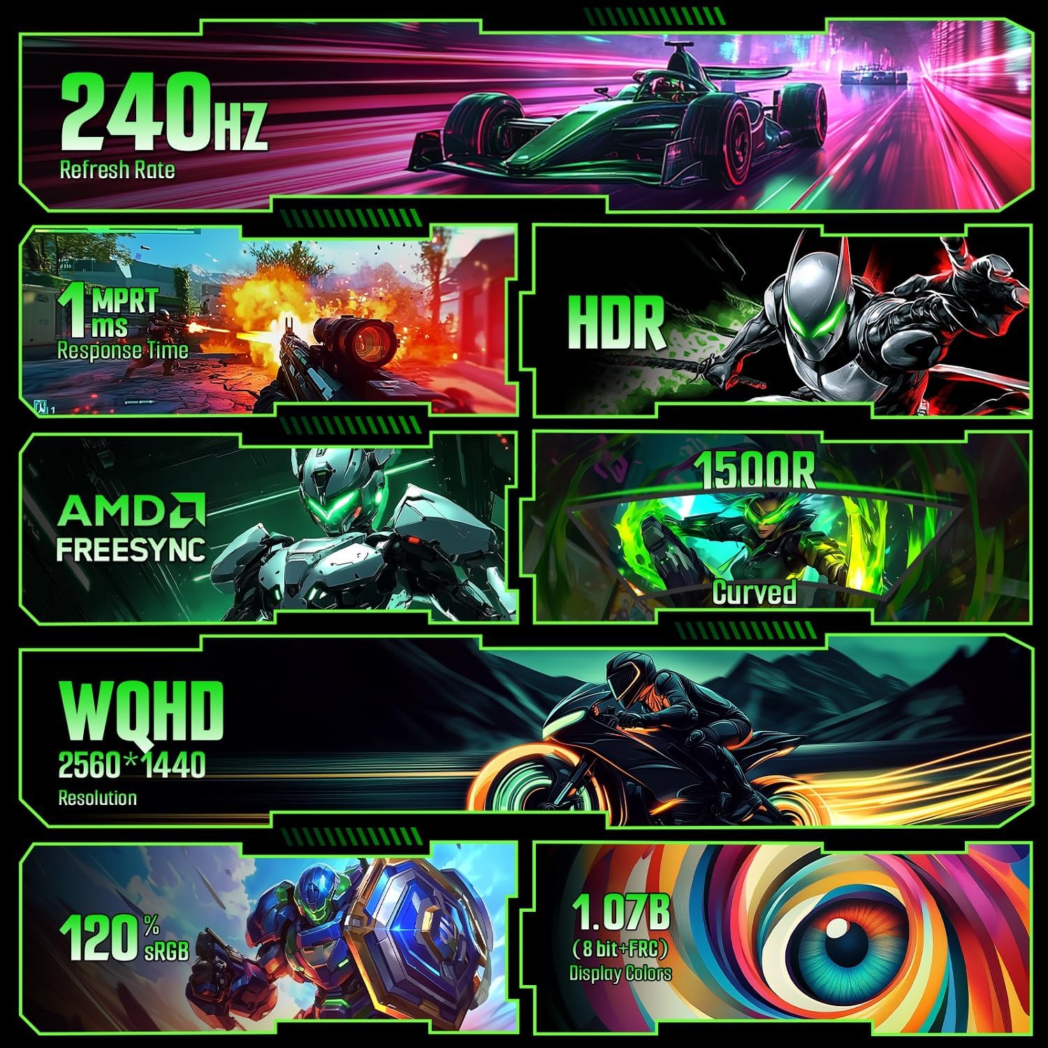 - SANSUI 27 Inch 240Hz 2K WQHD(2560*1440) 1500R Curved Gaming Monitor for Game and Entertainment.