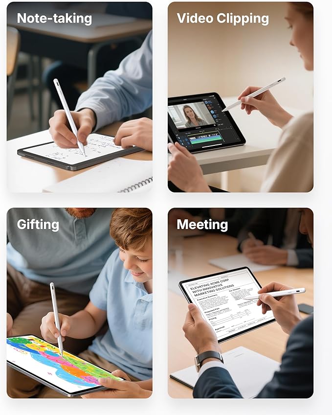 - 【First Universal Magnetic Pencil for iPad on the Market】: The upgraded A8 V4 pen supports magnetic attachment on all 2018–2025 iPad models that feature magnetic sides. It eliminates the hassle of needing different Apple Pencils for different iPads. The A8 V4 can magnetically attach to the following iPad models: iPad 10th/11th Gen, iPad Pro 13-inch M4, iPad Pro 12.9-inch 3rd/4th/5th/6th Gen, iPad Pro 11-inch 1st/2nd/3rd/4th/M4, iPad Air 4th/5th/6th (M2)/7th (M3), and iPad mini 6th/7th (A17 Pro)