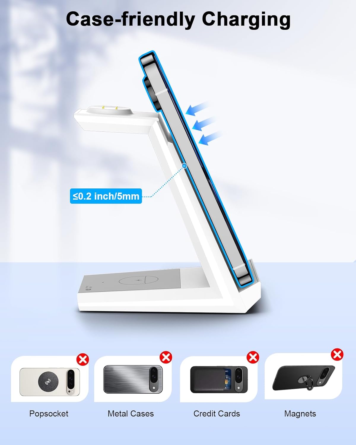 - [3-in-1 Wireless Charger Station] This upgrade wireless charger can charge with Qi-enabled Google Pixel phone + watch + earbuds simultaneously. The all in one charger is ideal for home and office use, since it eliminates tangled cords and keeps your desk uncluttered. Best choice for Google users