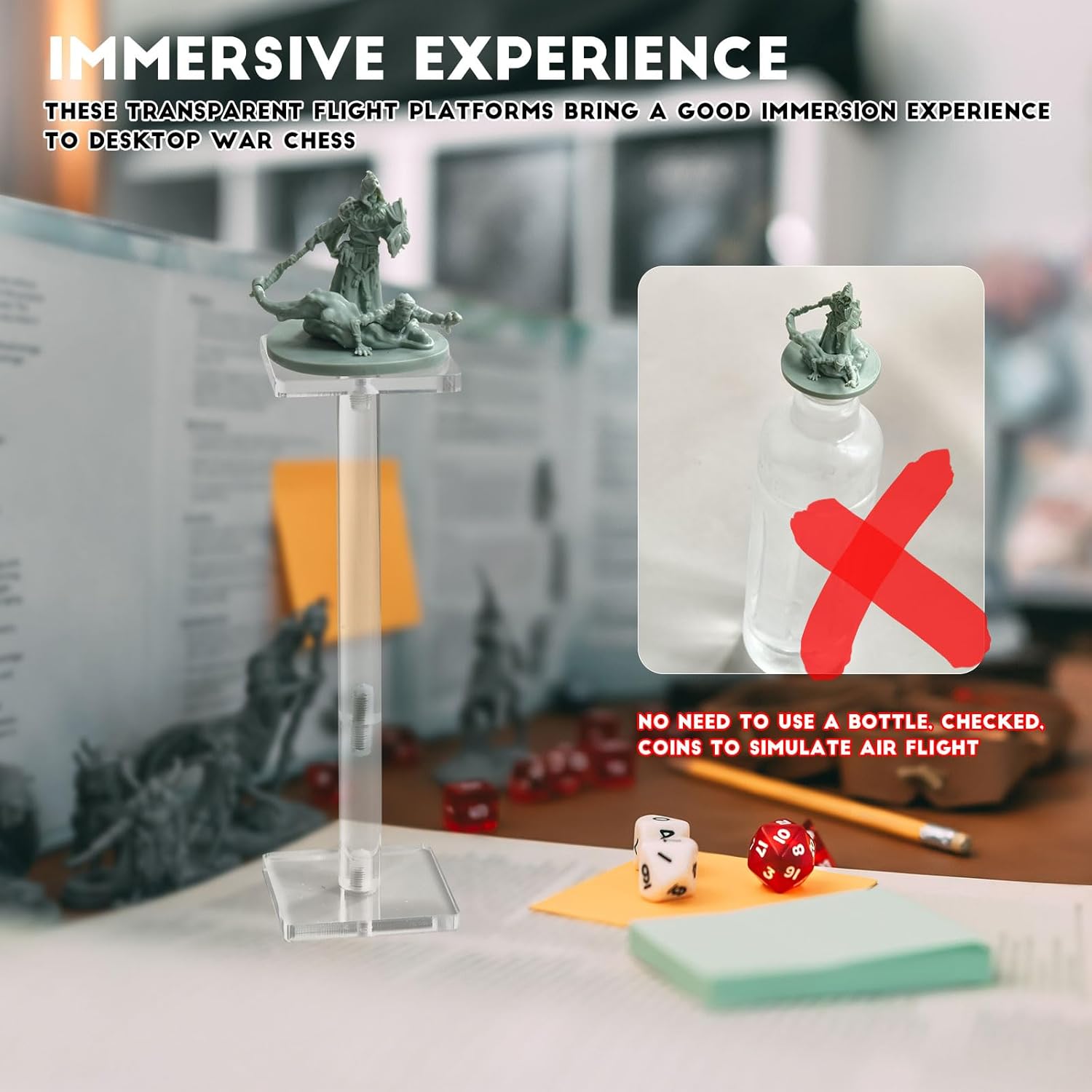 - Great For Tabletop Game: These 3D flying risers are well designed, well made, and sturdily built. And clear material will not obscure the gaming environment, very suitable for any tabletop gaming