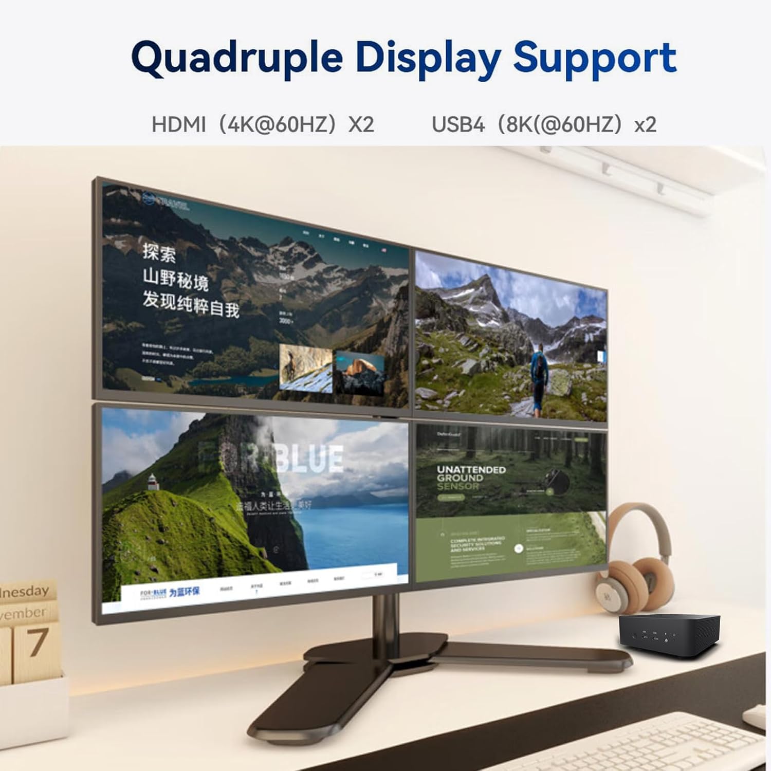 - 【Support 4K quad-Screen Display】UM790 Pro Personal Computer with 2x HDMI(4K@60Hz) and 2x USB4(8K@60Hz), which support four monitors display simultaneously and provide a larger and wider filed of view to improve your work efficiency. Through the USB4 interface, a single cable can drive a 15w mobile display.