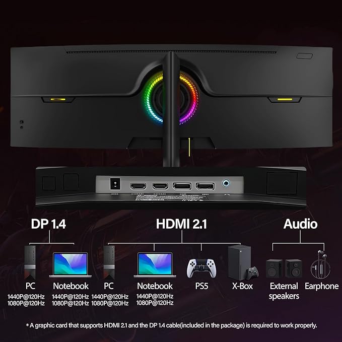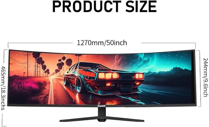 Gawfolk 49 Inch Ultra-Wide Curved Gaming Monitor, 120Hz Ultrawide PC Screen 5120x1440, FreeSync, Height Adjustable, HDMI 2.1/DP 1.4, Compatible Wall Mount